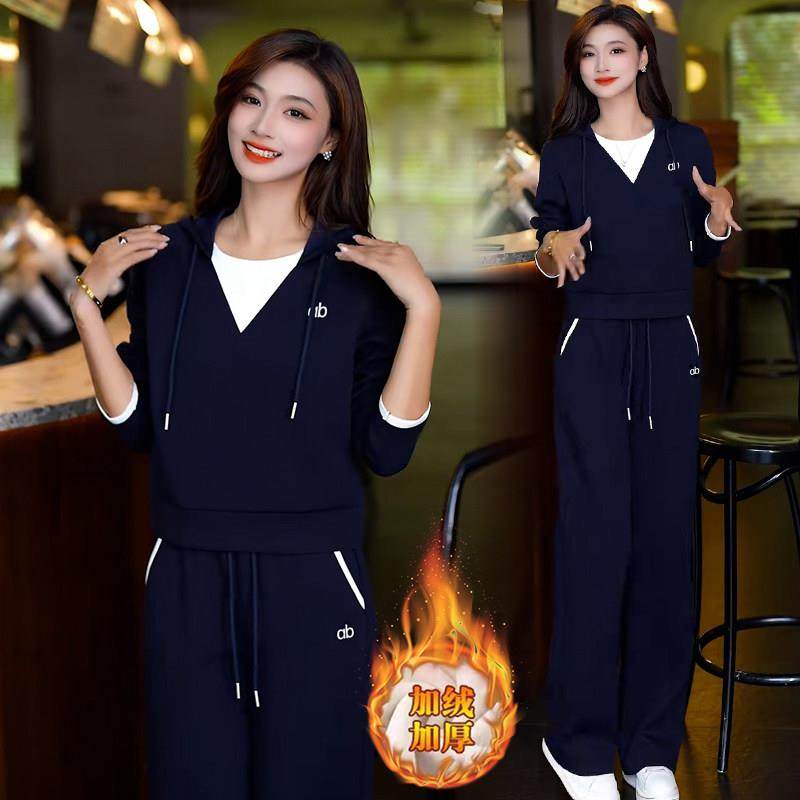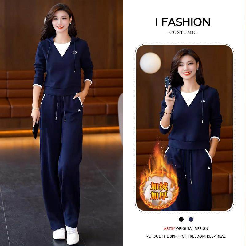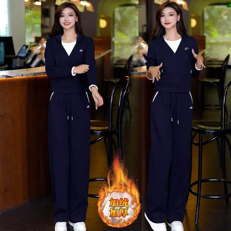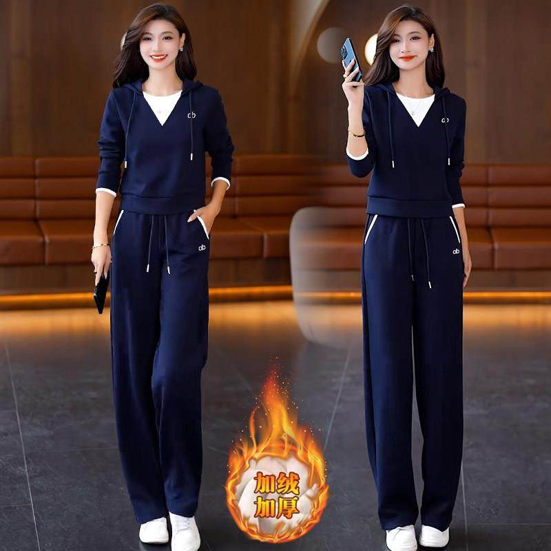 首页> 女装> 香港休闲运动套装女冬2025新款加绒加厚连帽卫衣阔腿裤两件套欧货