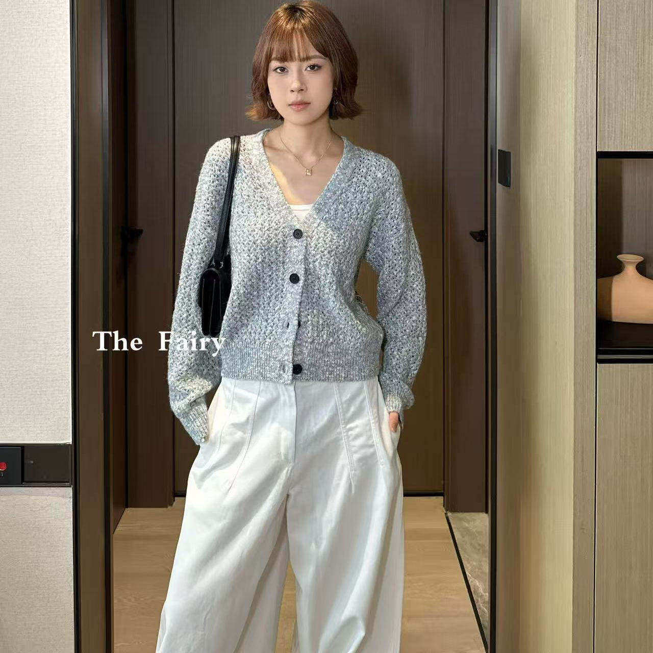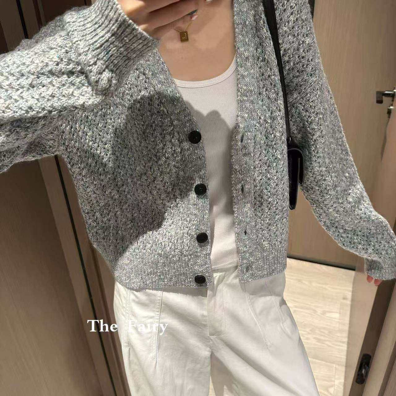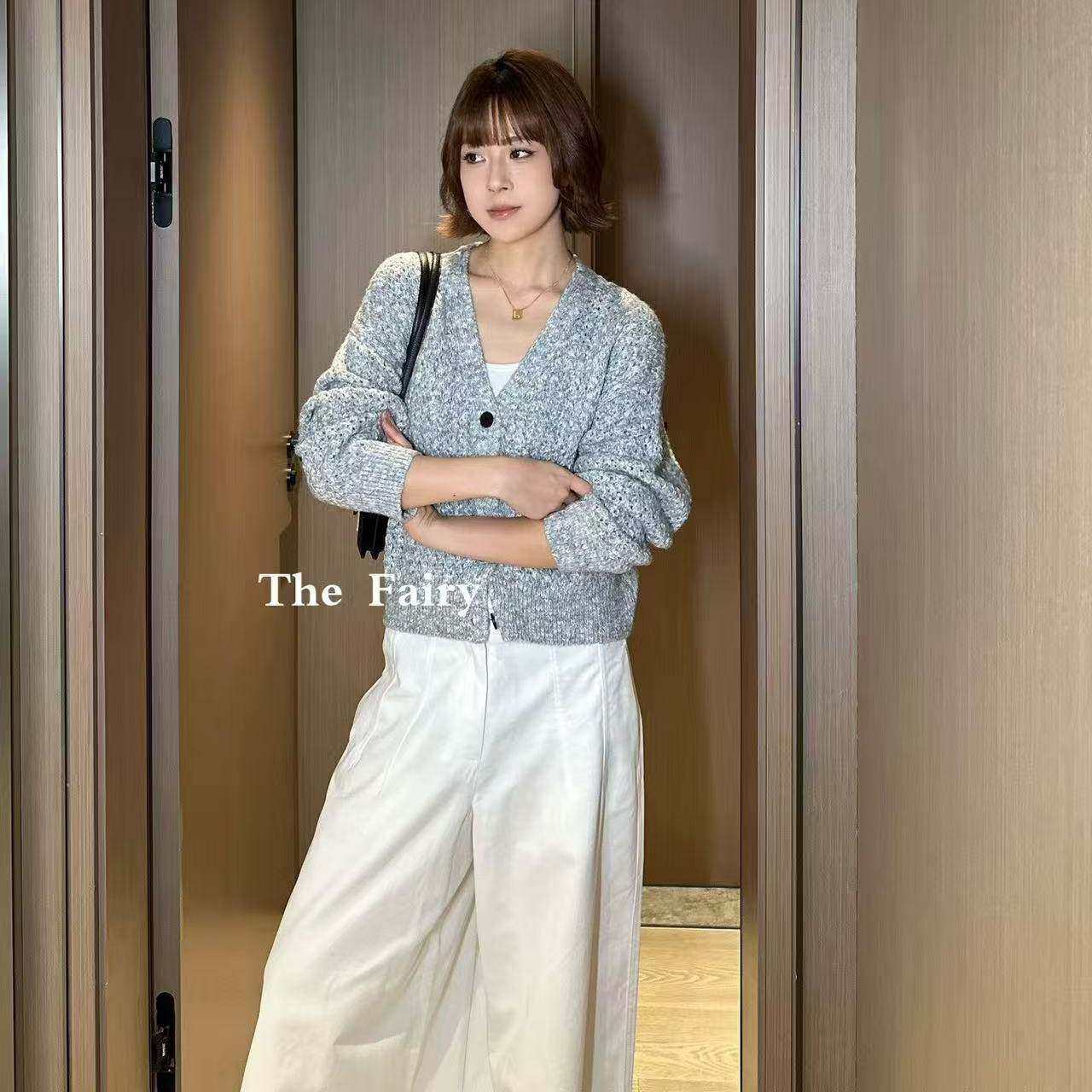 好漂亮灰色针织开衫外套女2025年冬季新款短上衣宽松休闲时尚热销