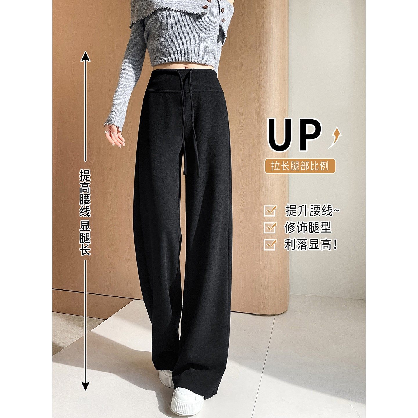 灰色羊毛阔腿裤女秋宽松慵懒风高腰直筒窄版小个子微喇垂感糯米裤