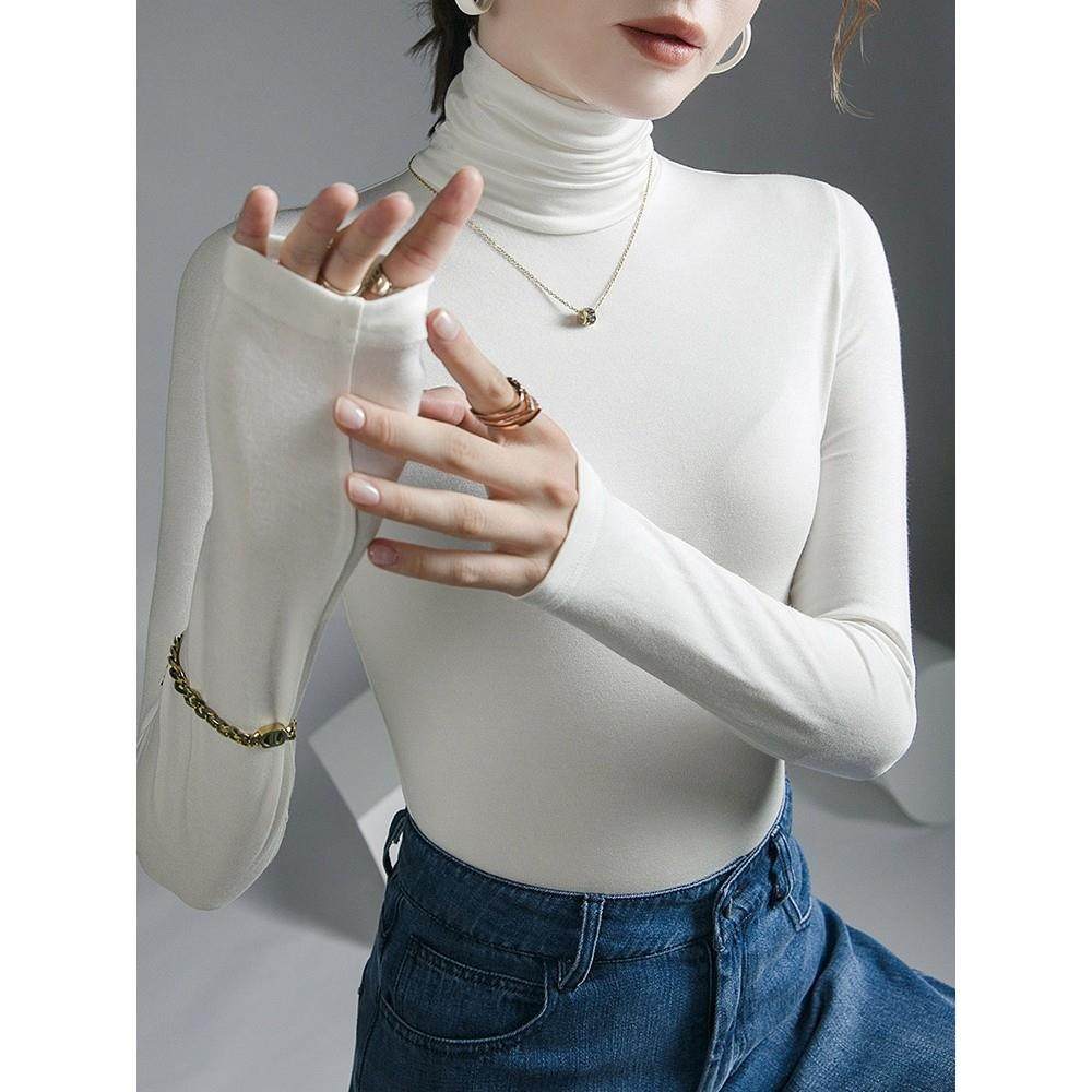 高领打底衫女莫代尔2025春秋新款显瘦弹力洋气百搭堆堆领内搭上衣