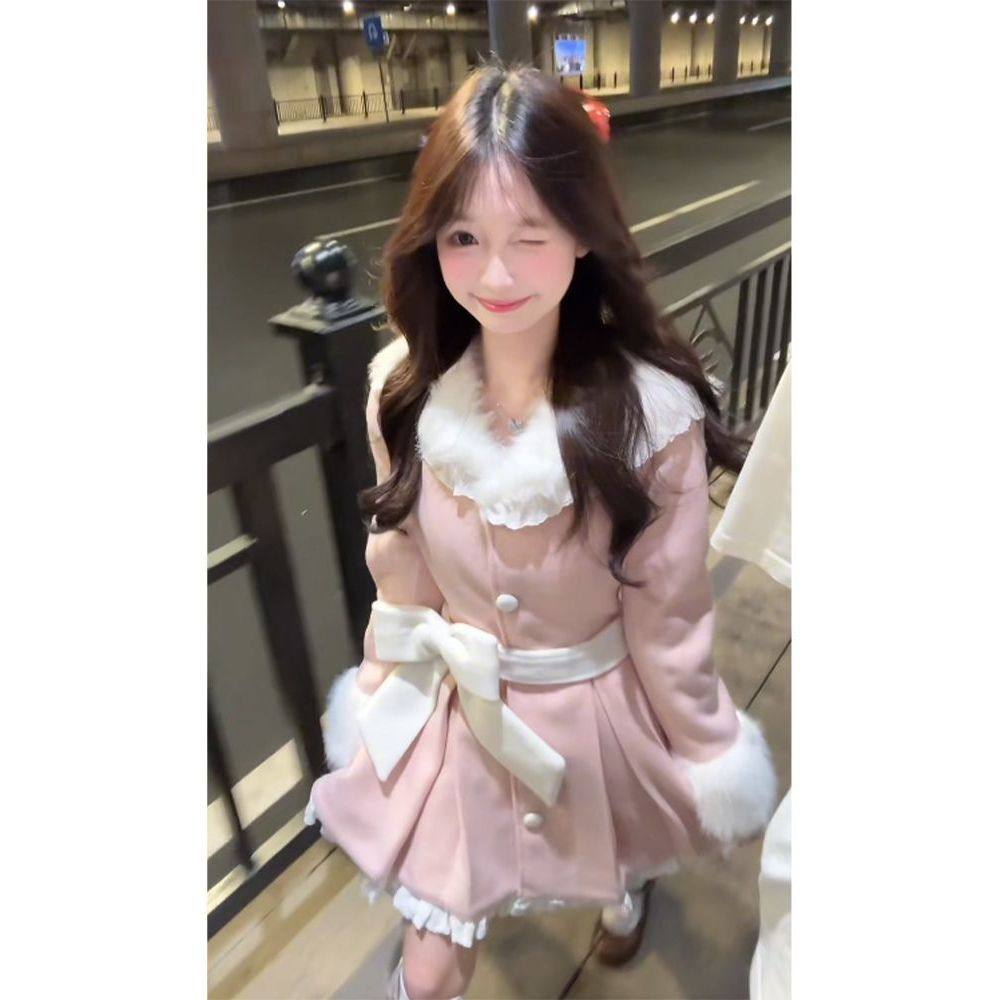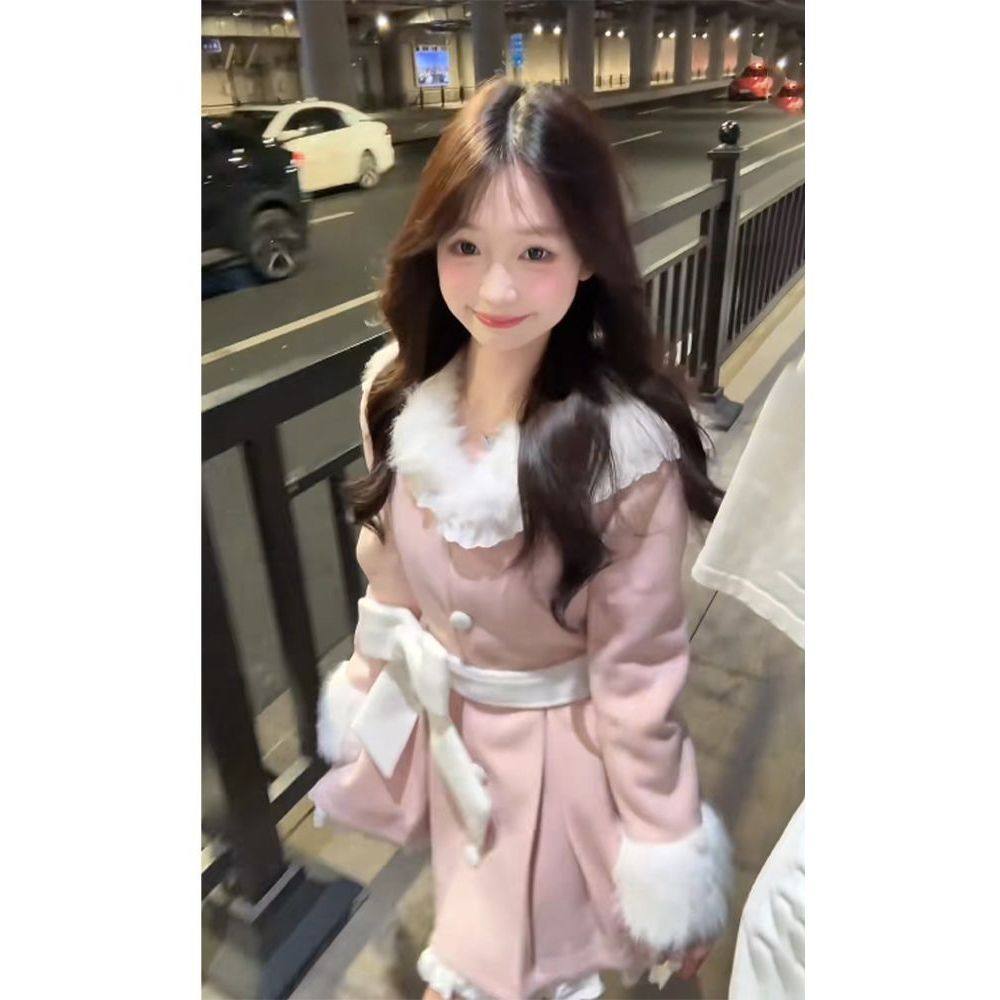 【甜美少女】2025新款日系可爱毛呢外套纯欲风淑女毛绒收腰大衣女