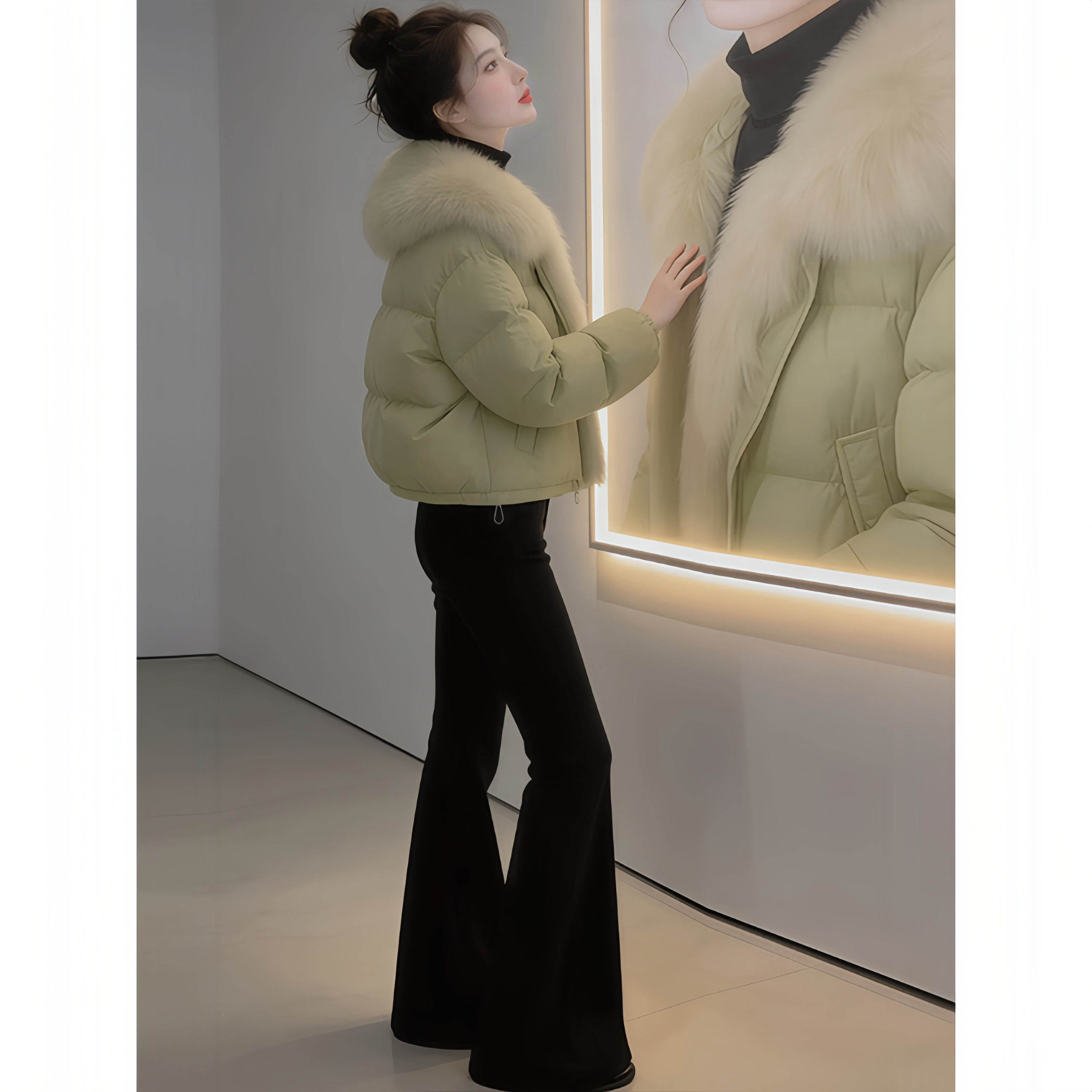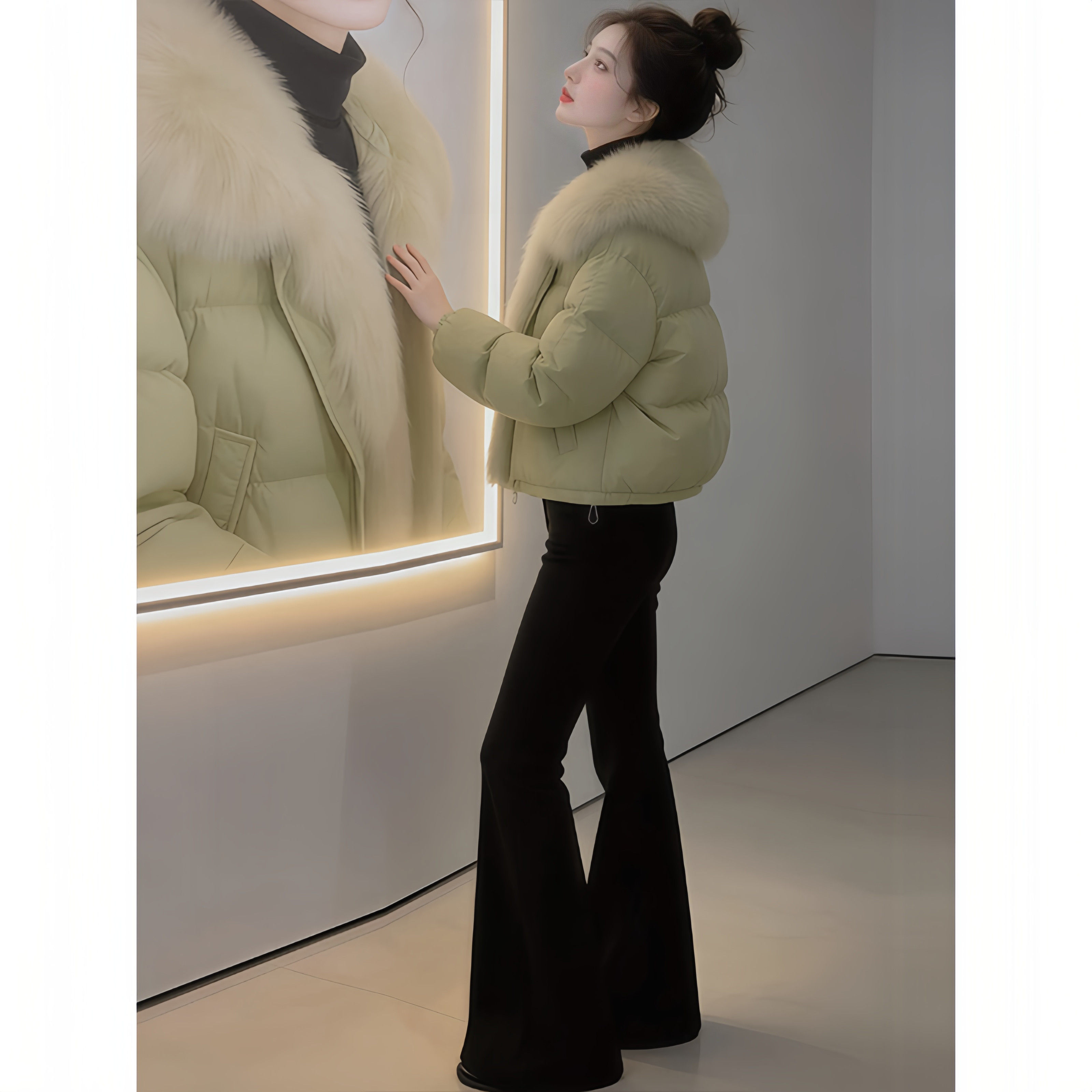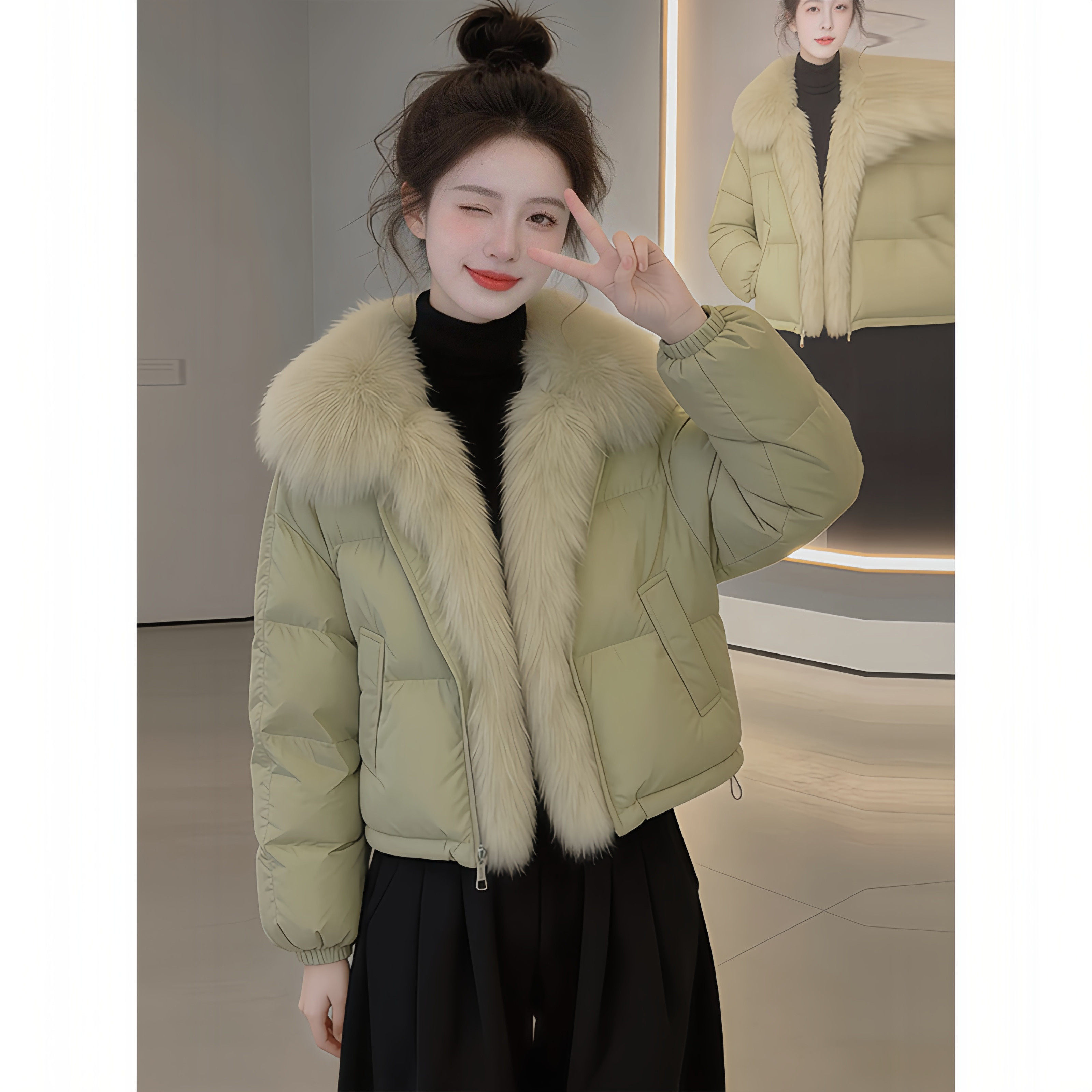 小香风大毛领羽绒棉服女款2025秋冬季新款保暖加厚棉衣面包服外套