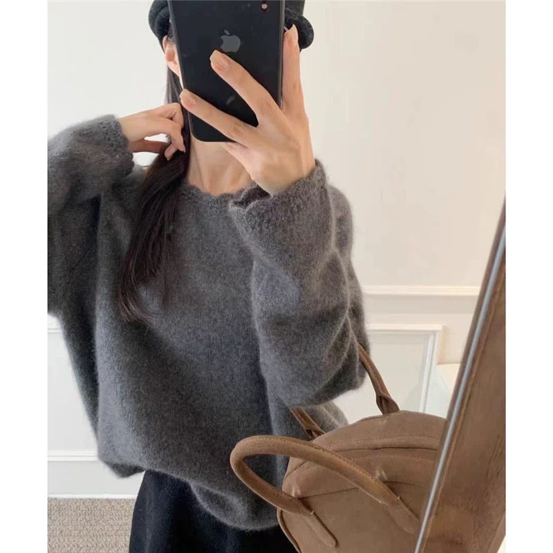 慵懒风宽松休闲减龄圆领毛衣女秋冬蕾丝花边显瘦百搭针织衫上衣潮
