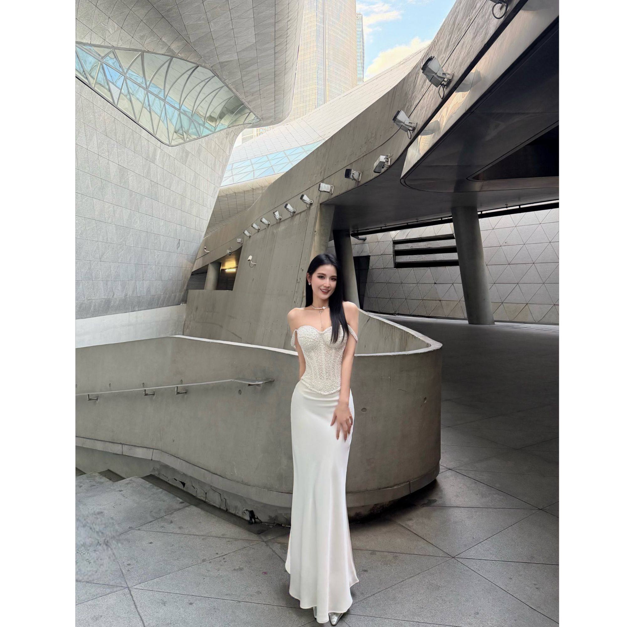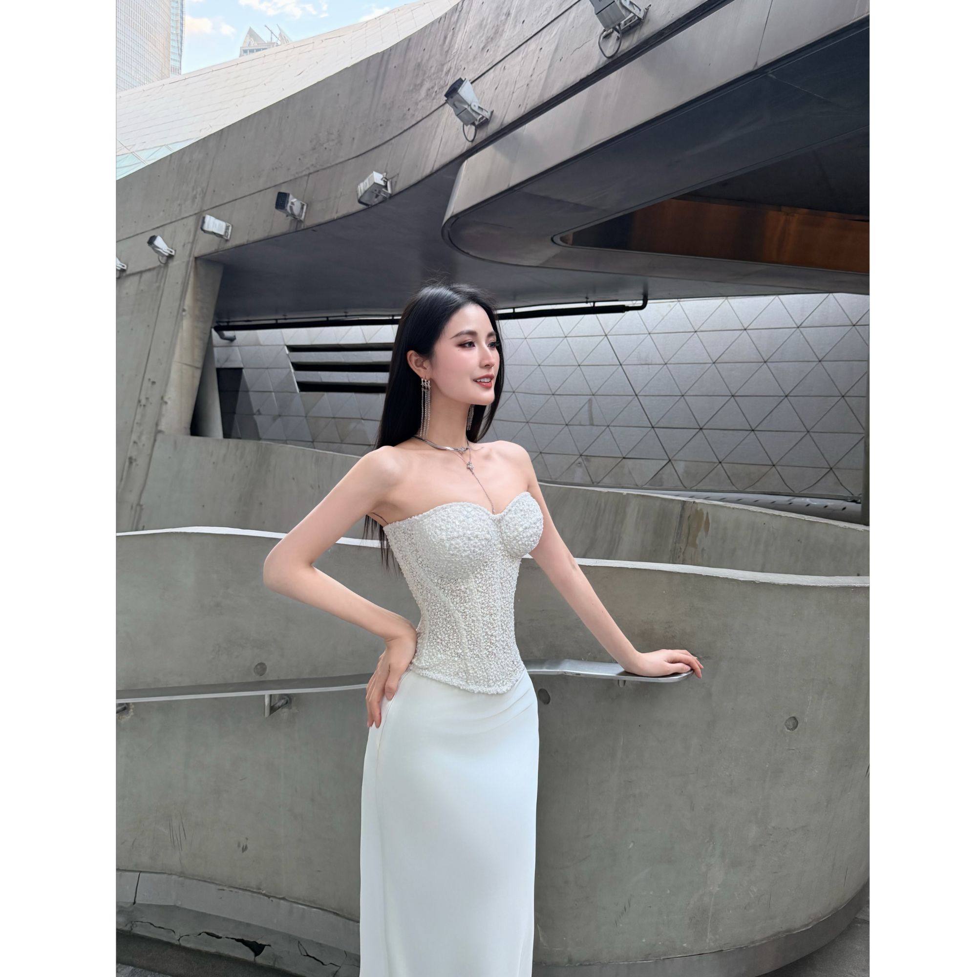 BETTER ME 法式性感立体鱼骨束身抹胸上衣配流光缎面裙高级感套装