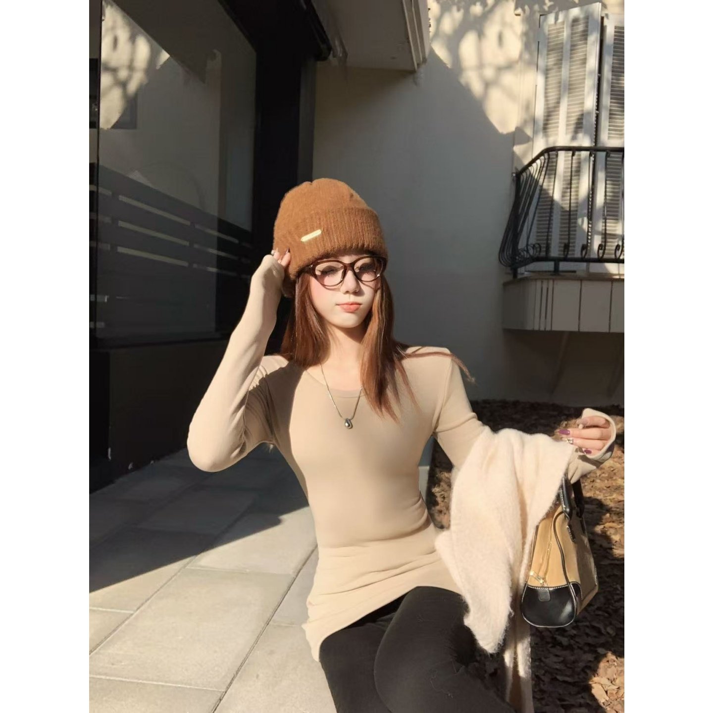 首页> 女装> 铅笔莓莓 2025新款韩系设计感加绒内搭打底衫女冬季修身保暖上衣