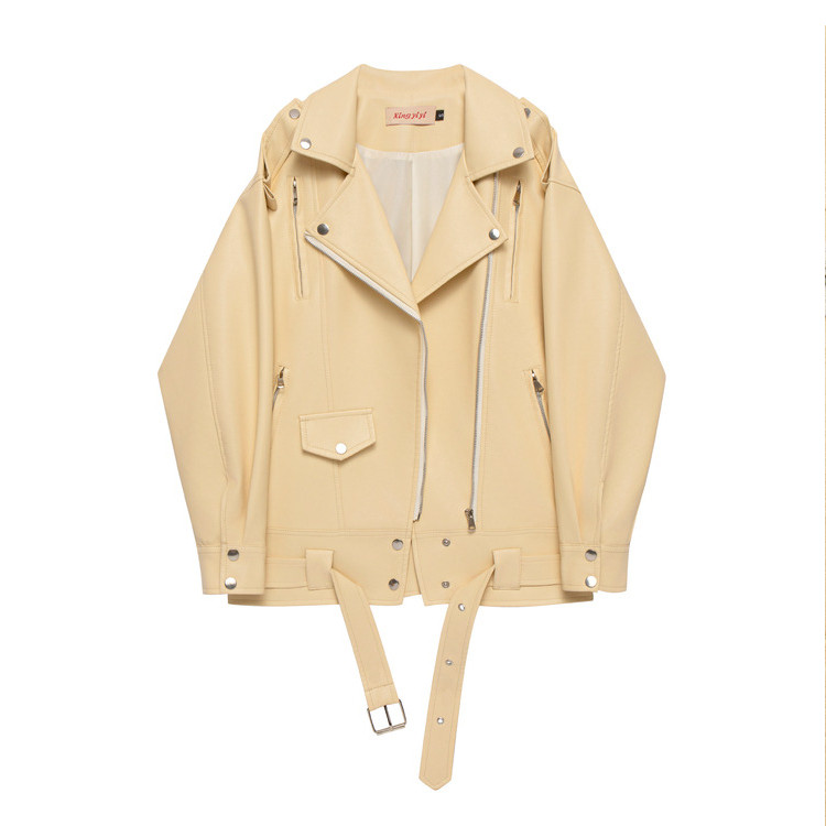 黑色中长款皮衣外套女春秋款韩版机车BF风皮衣外套夹克