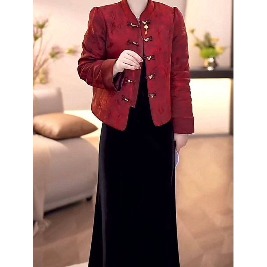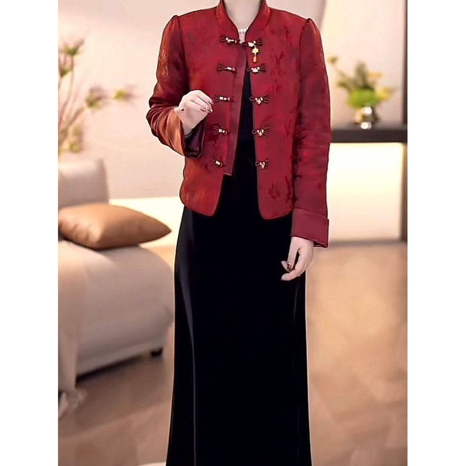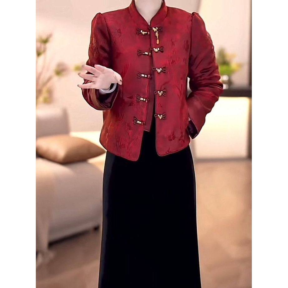 新中式夹棉加厚丝缎两件套半身裙2025冬新款时尚气质显瘦洋气套装
