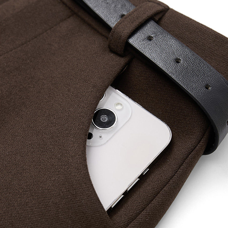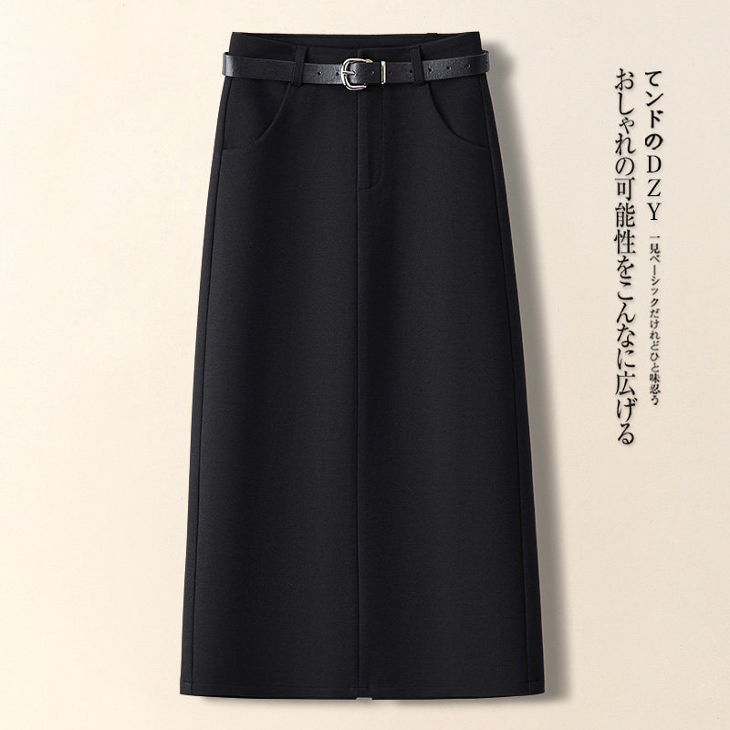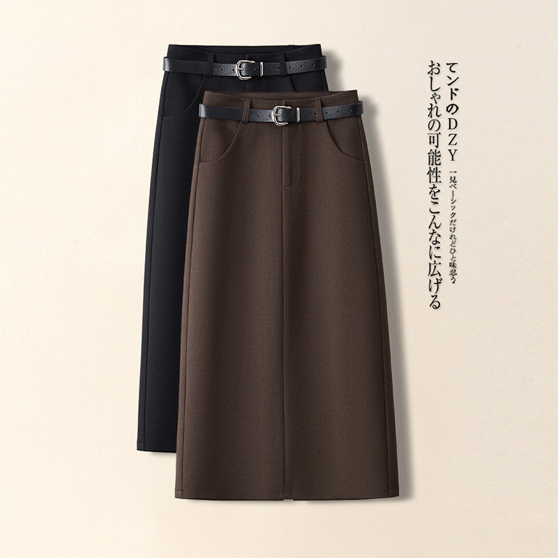啄木鸟咖色毛呢半身裙女秋冬款高腰显瘦垂坠感a字裙一步包臀裙子