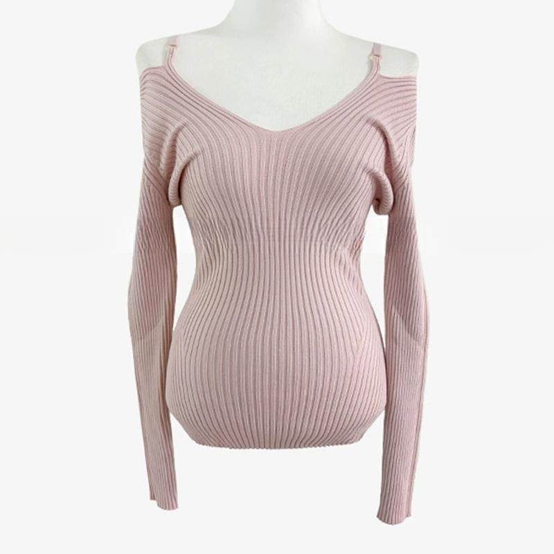 韩国东大门新款高级感纯欲风~性感露肩设计修身长袖针织衫女上衣