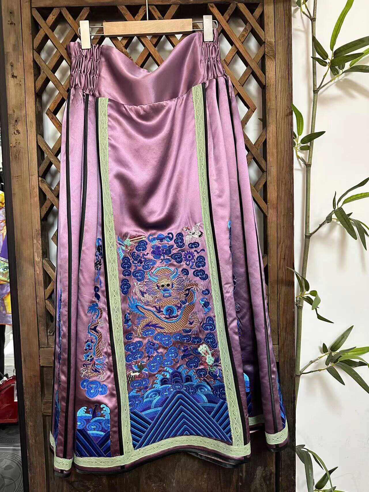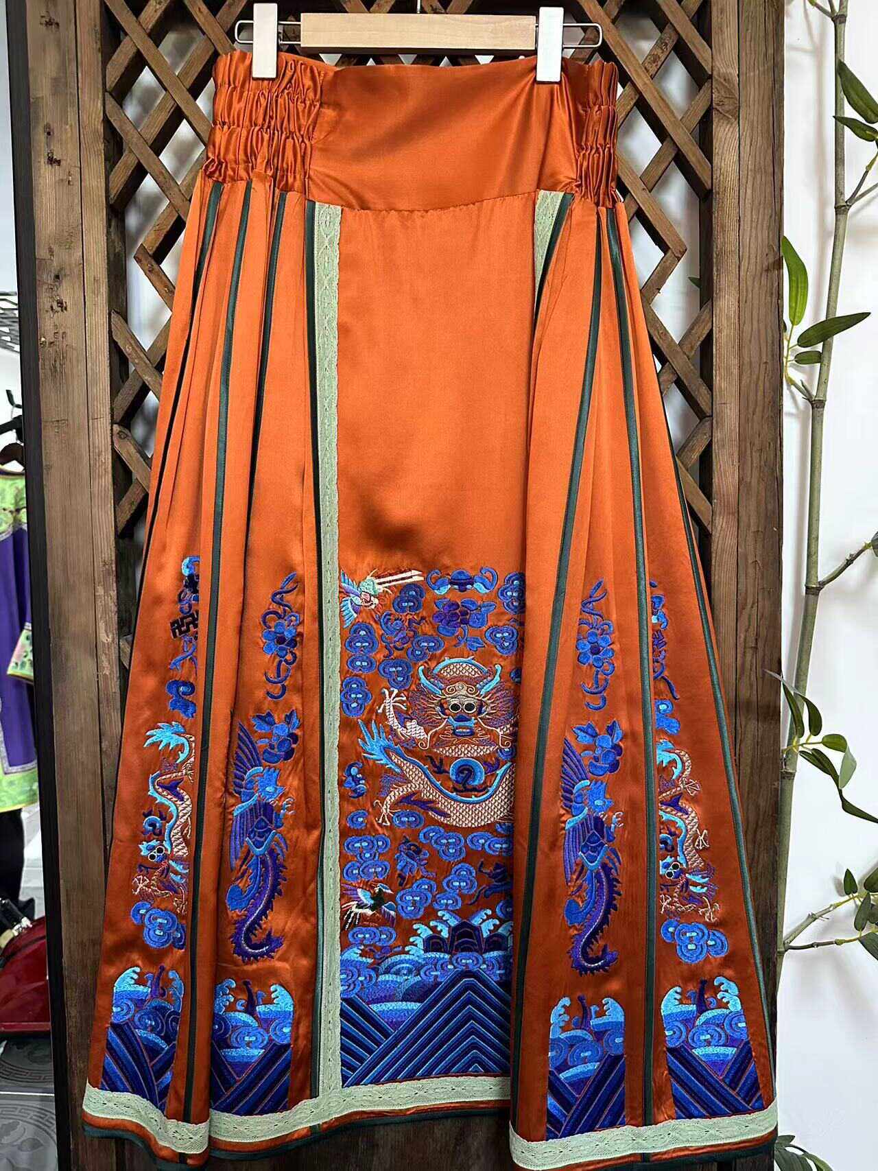瑜玥传琦新款中式桑蚕丝重工刺绣国风香云纱汉服马面裙高端半身裙