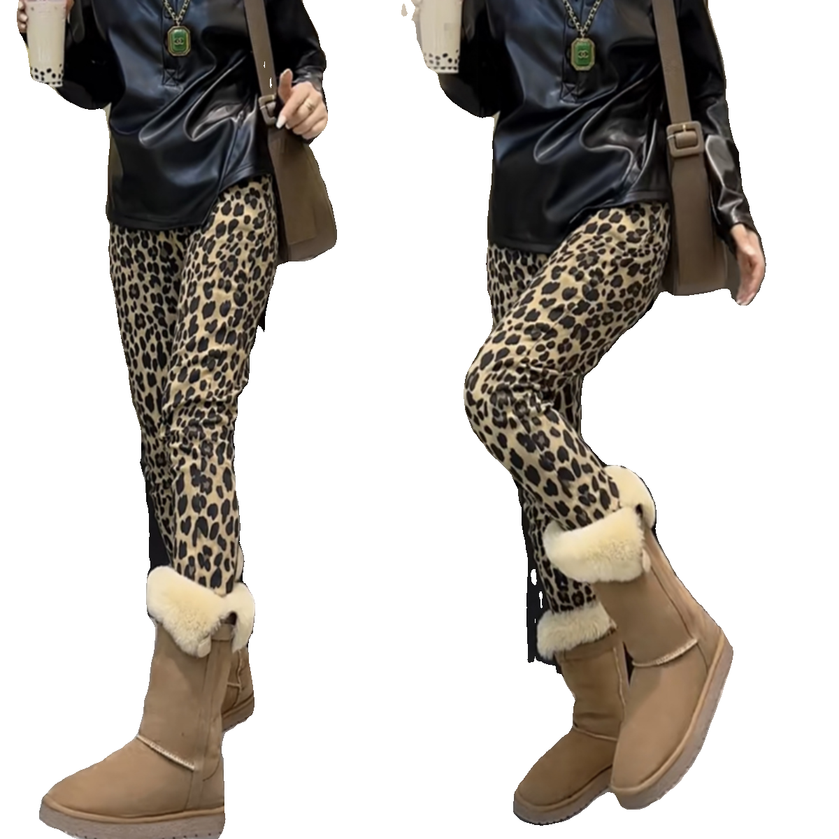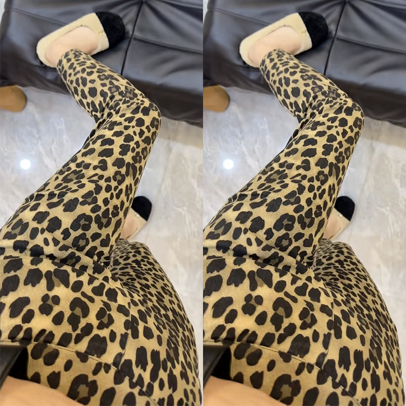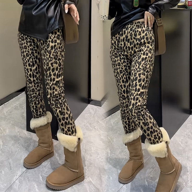 豹纹牛仔铅笔裤女松紧腰秋冬弹力百搭时尚九分裤欧货时尚小脚裤潮