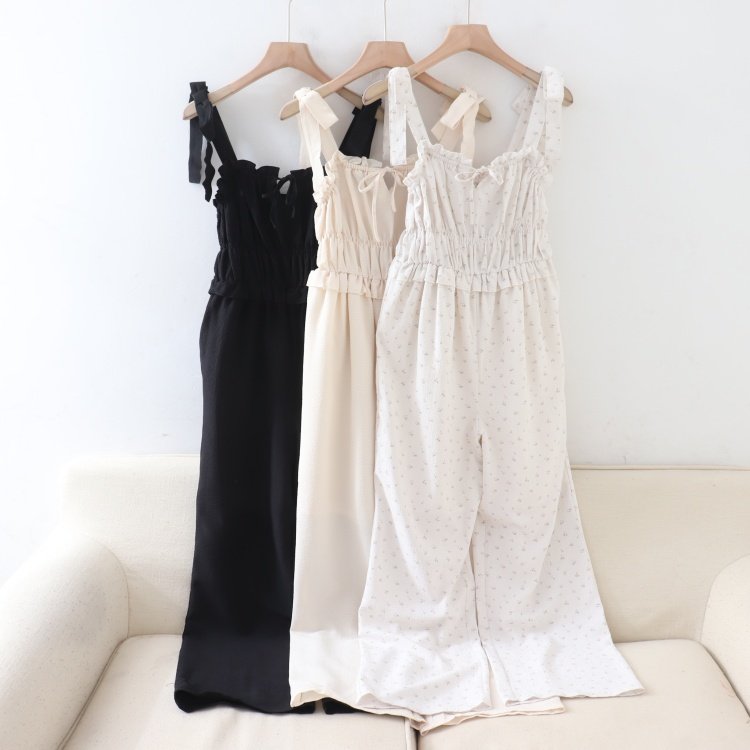 首页> 女装> B070107日单夏新款甜美系带花边领松紧腰微宽松长裤女连体阔腿裤