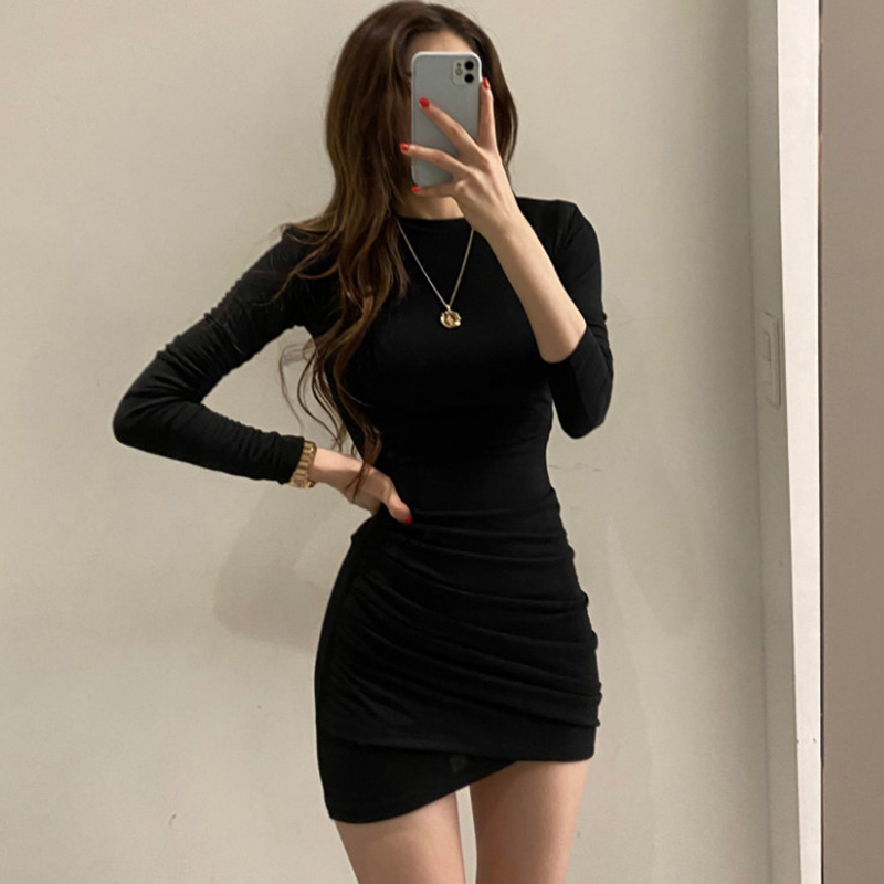 首页> 女装> 修身长袖连衣裙性感女装内搭秋冬2025新款收腰包臀连身短裙子打底