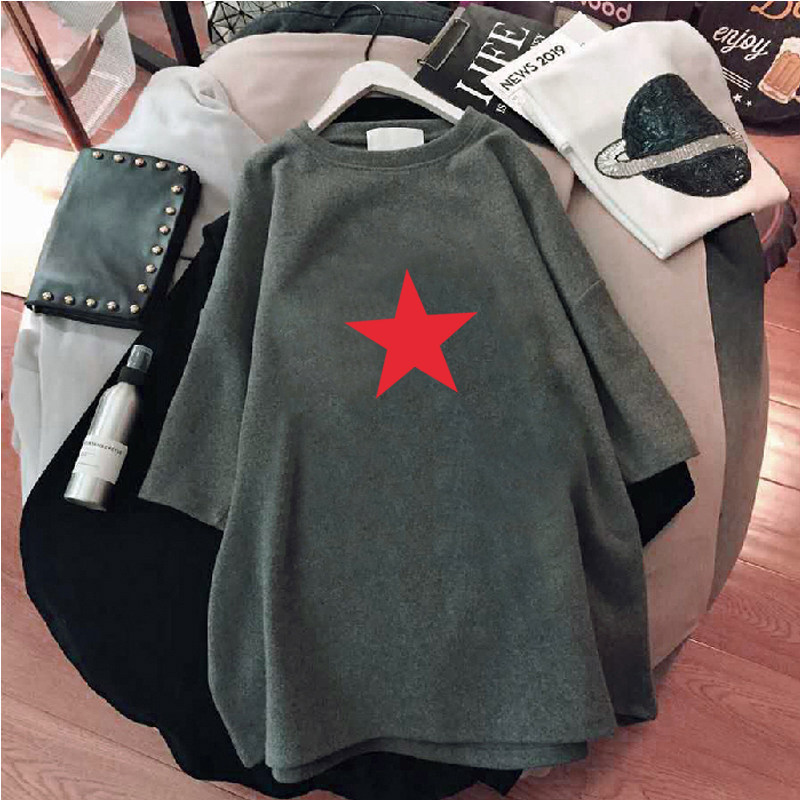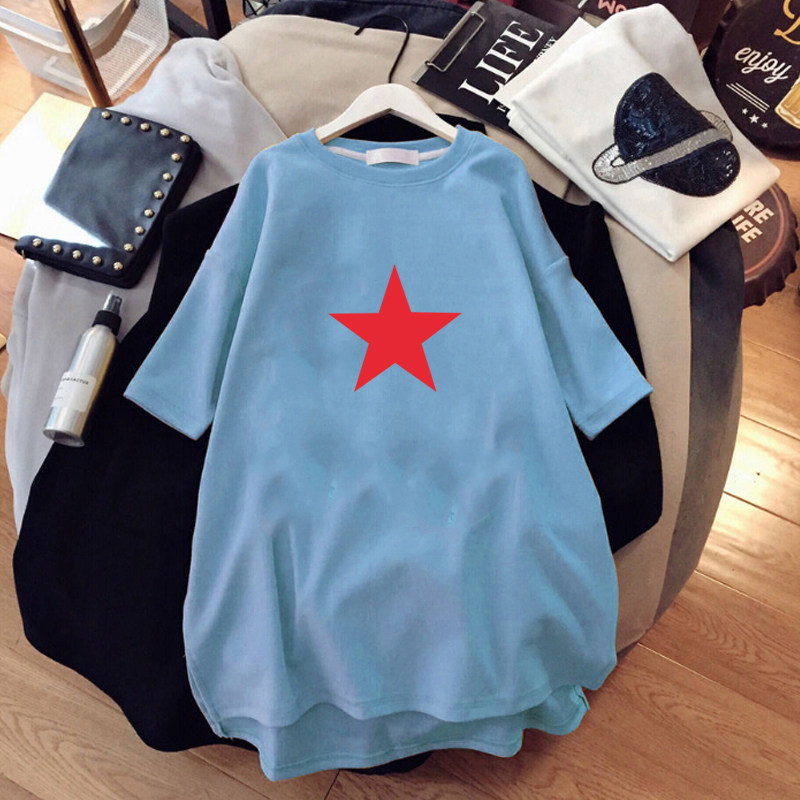 夏季新款中长款五角星体恤宽松大版网红超火cec短袖t恤女ins上衣