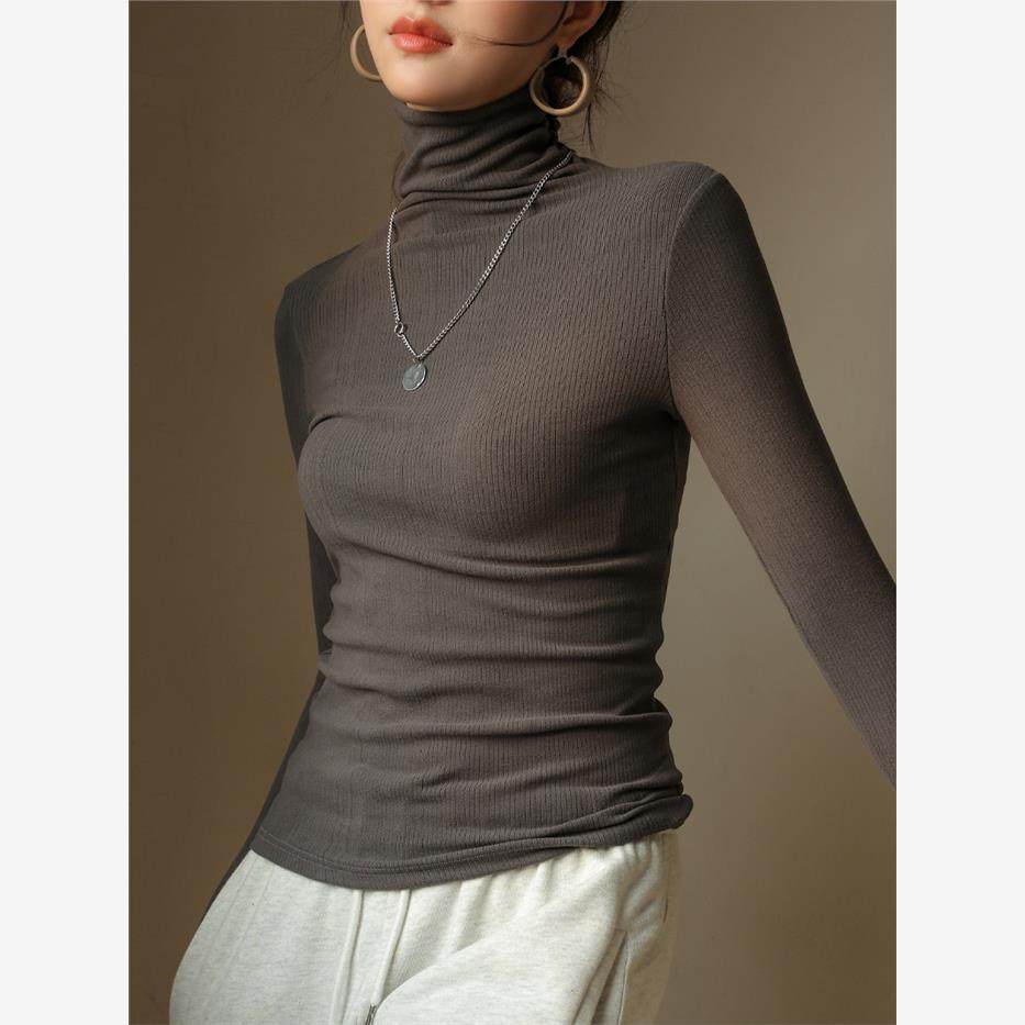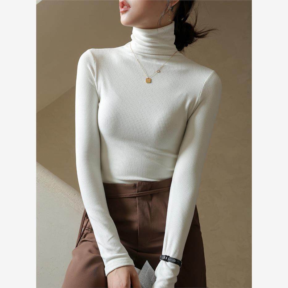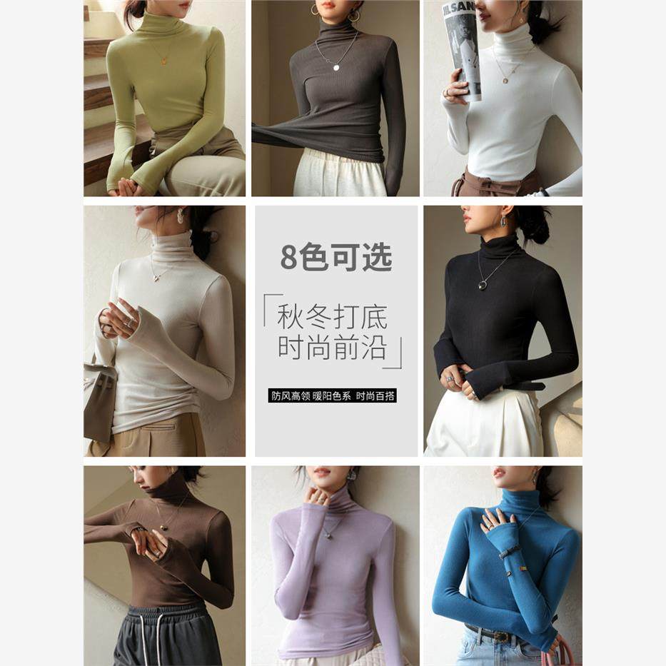 德绒高领打底衫女2024春秋冬内搭堆领长袖T恤新款洋气黑色上衣