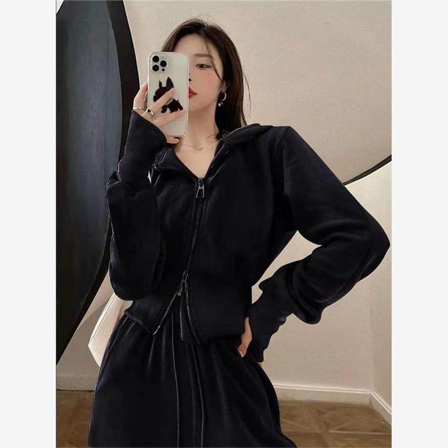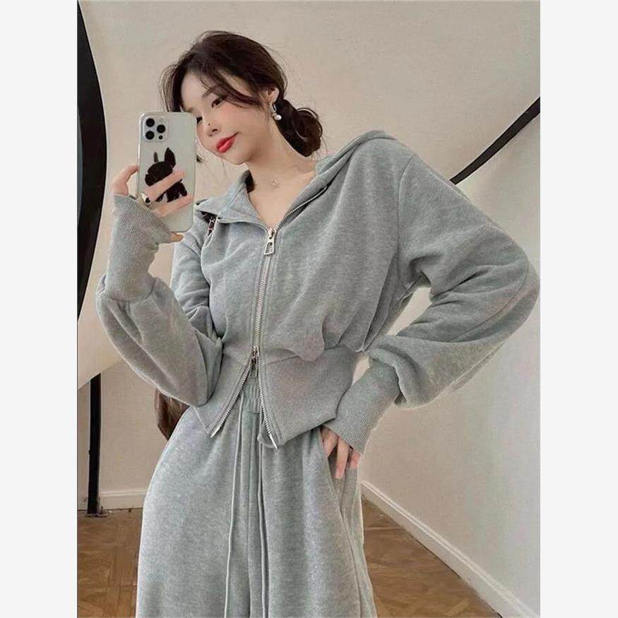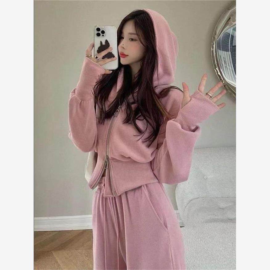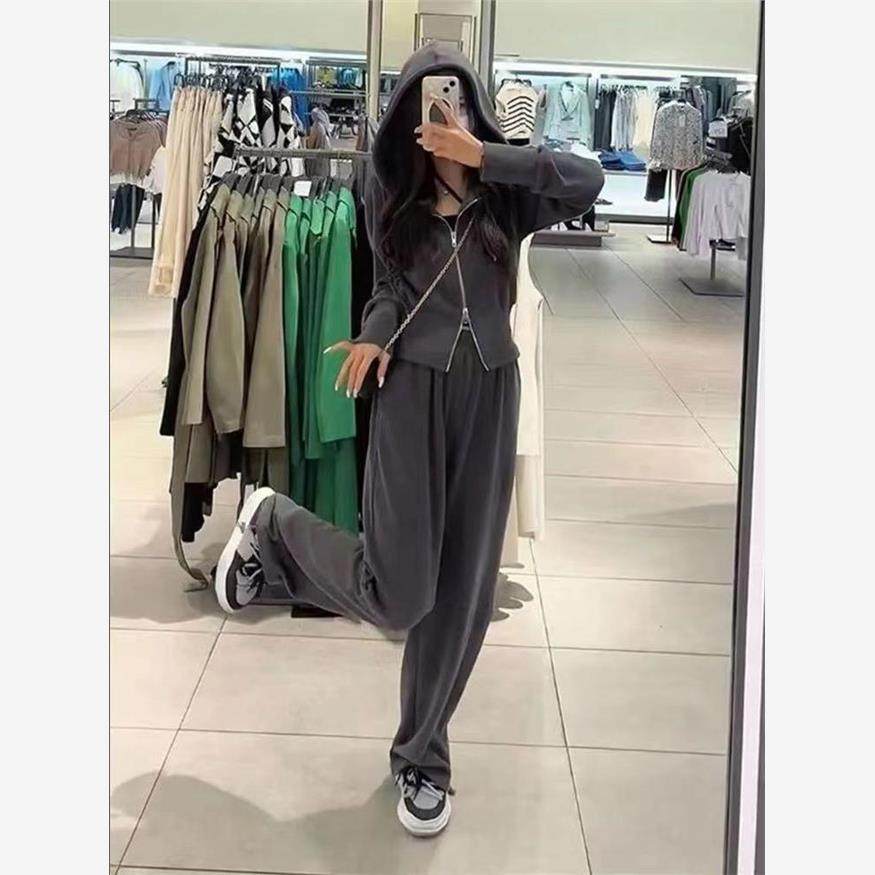 运动套装女2023秋季新款韩版宽松网红休闲卫衣拉链+阔腿裤两件套