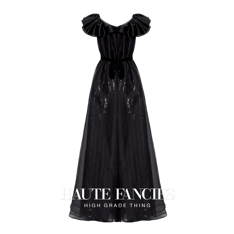 女高音 HAUTE FANCIES后构想 | 黑色珠片蕾丝法式复古宫廷礼服裙
