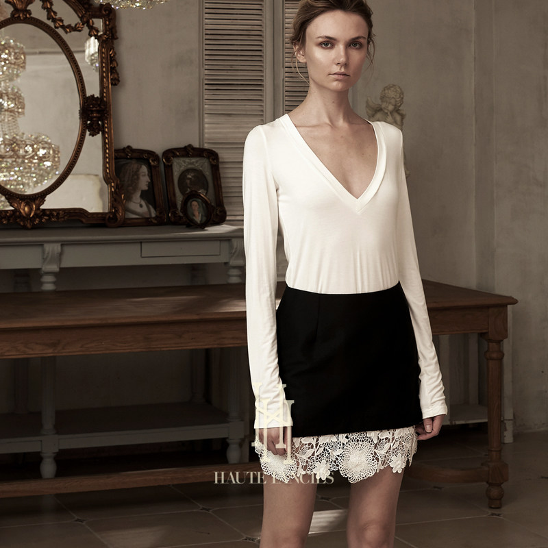 手工剪花 HAUTE FANCIES后构想|黑色羊毛蕾丝料基础版型小短裙