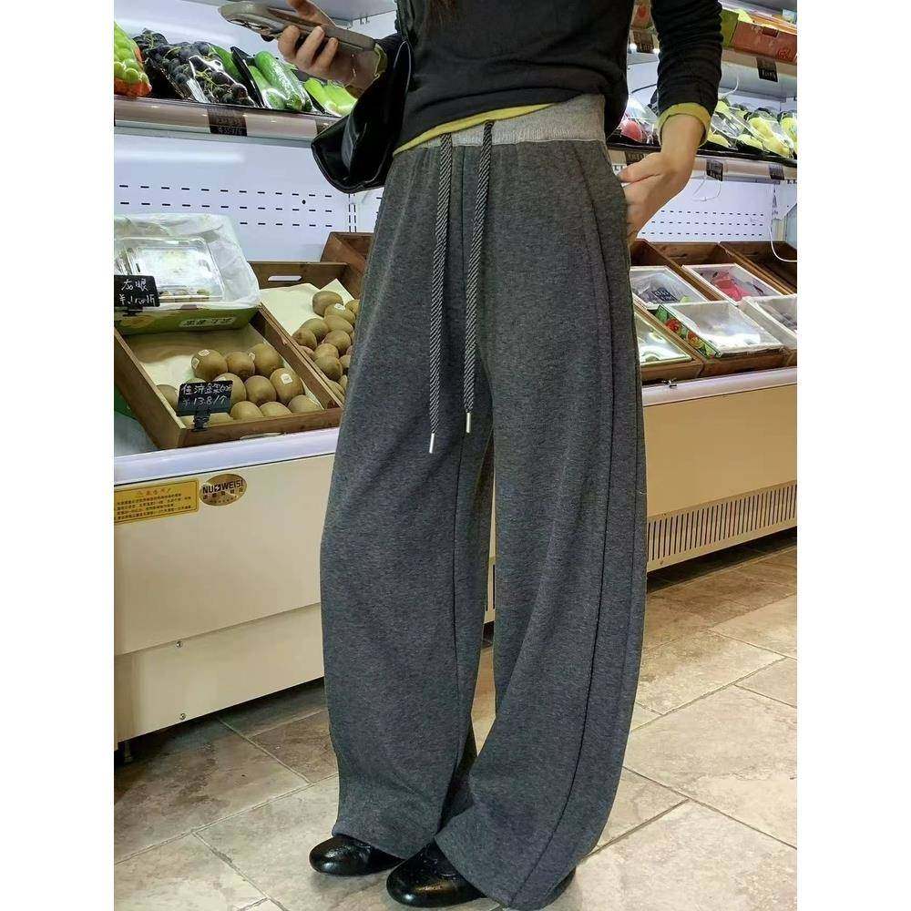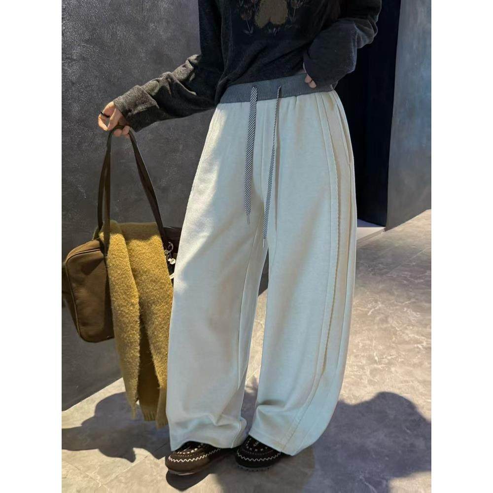 sommy375欧货2025冬装加绒加厚羊绒裤子女弯刀阔腿裤休闲卫裤长裤