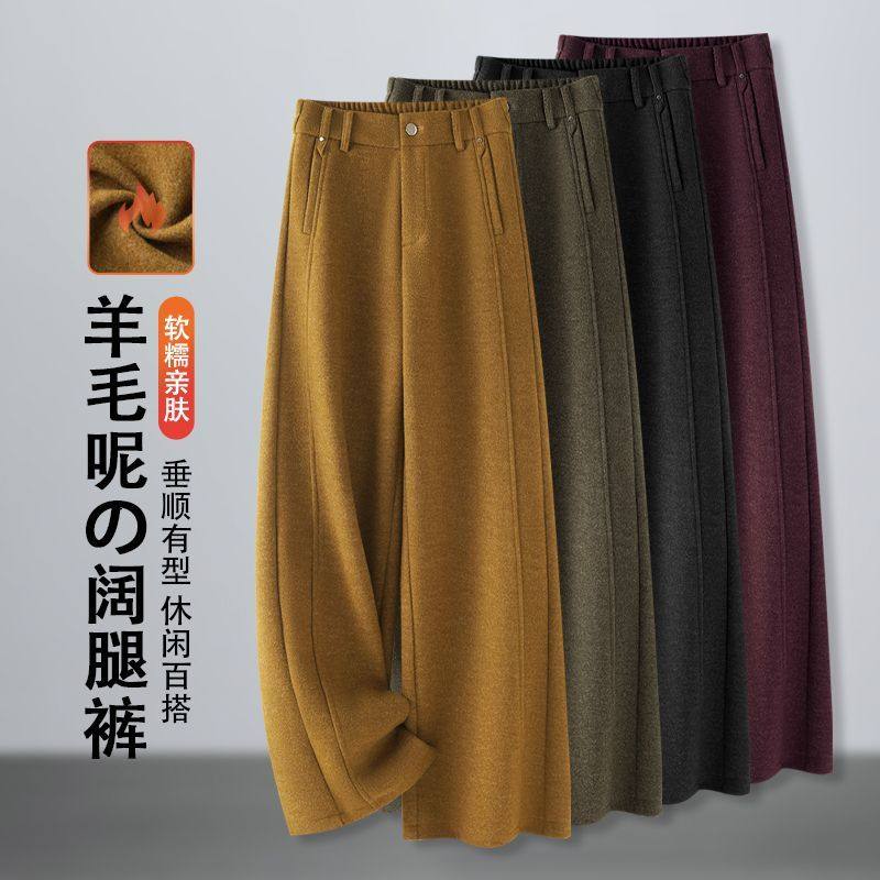 时尚羊毛呢阔腿裤女秋冬季2025新款保暖加厚宽松显瘦直筒休闲裤子