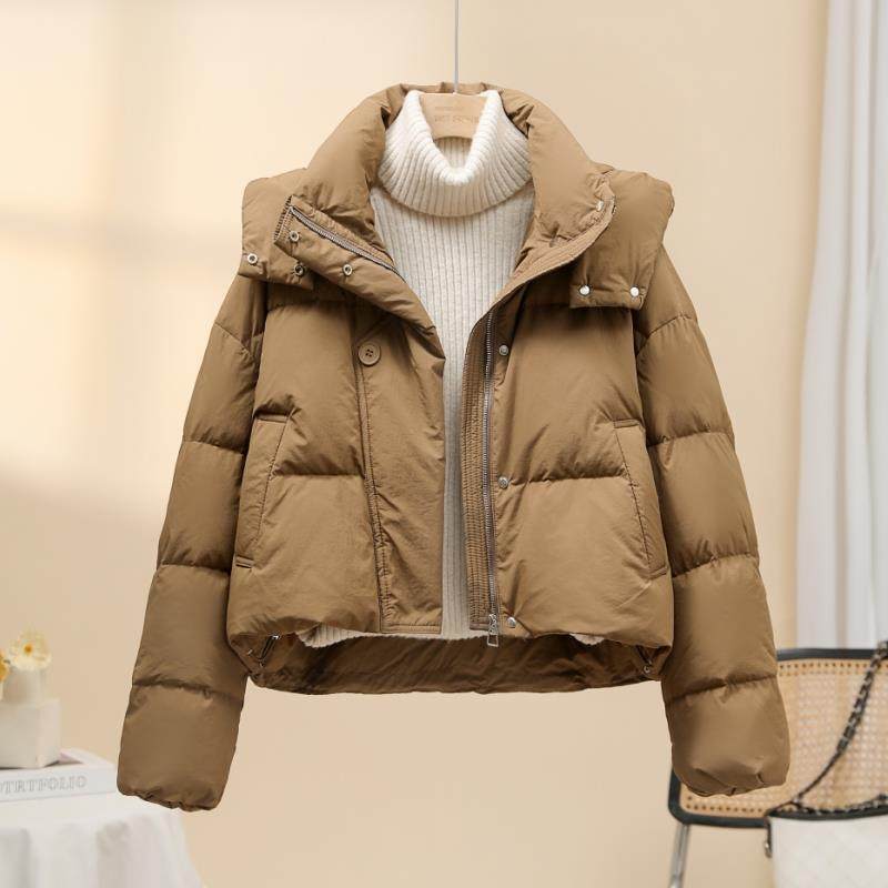 羽绒服女短款2025新款今年流行爆款时尚连帽加厚小个子白鸭绒冬季