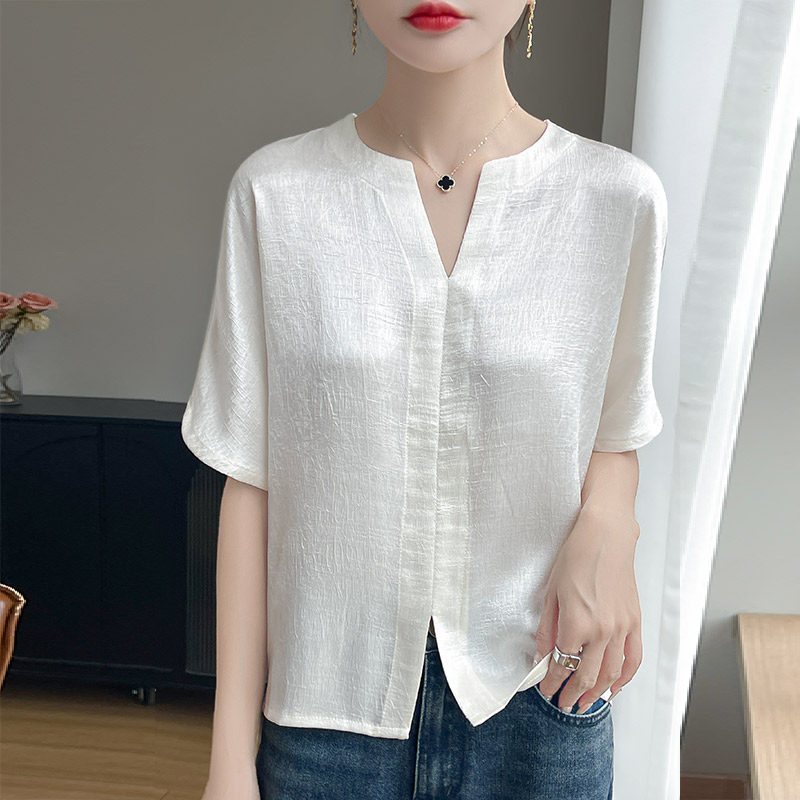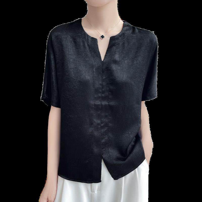 夏季新款简约肌理感褶皱衬衫宽松百搭显瘦时尚休闲上衣