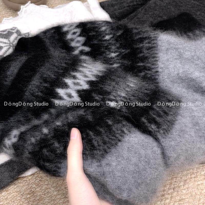 大角羊拉绒![黑凤凰]费尔岛提花圆领套头宽松长袖针织毛衣257187
