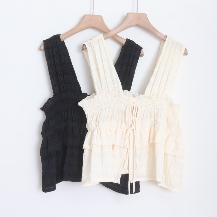 首页> 女装> D160120日单新款气质花边松紧领系带宽松显瘦女纯色甜美外穿背心