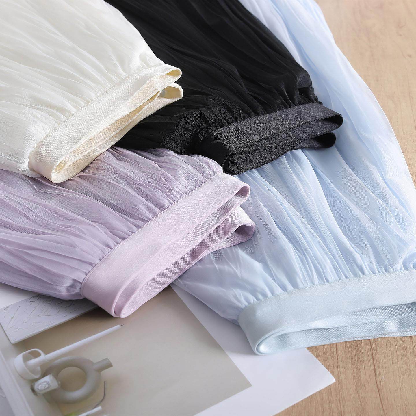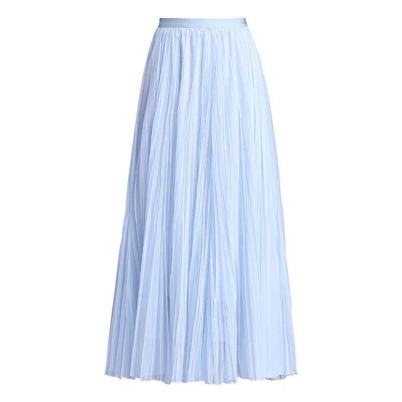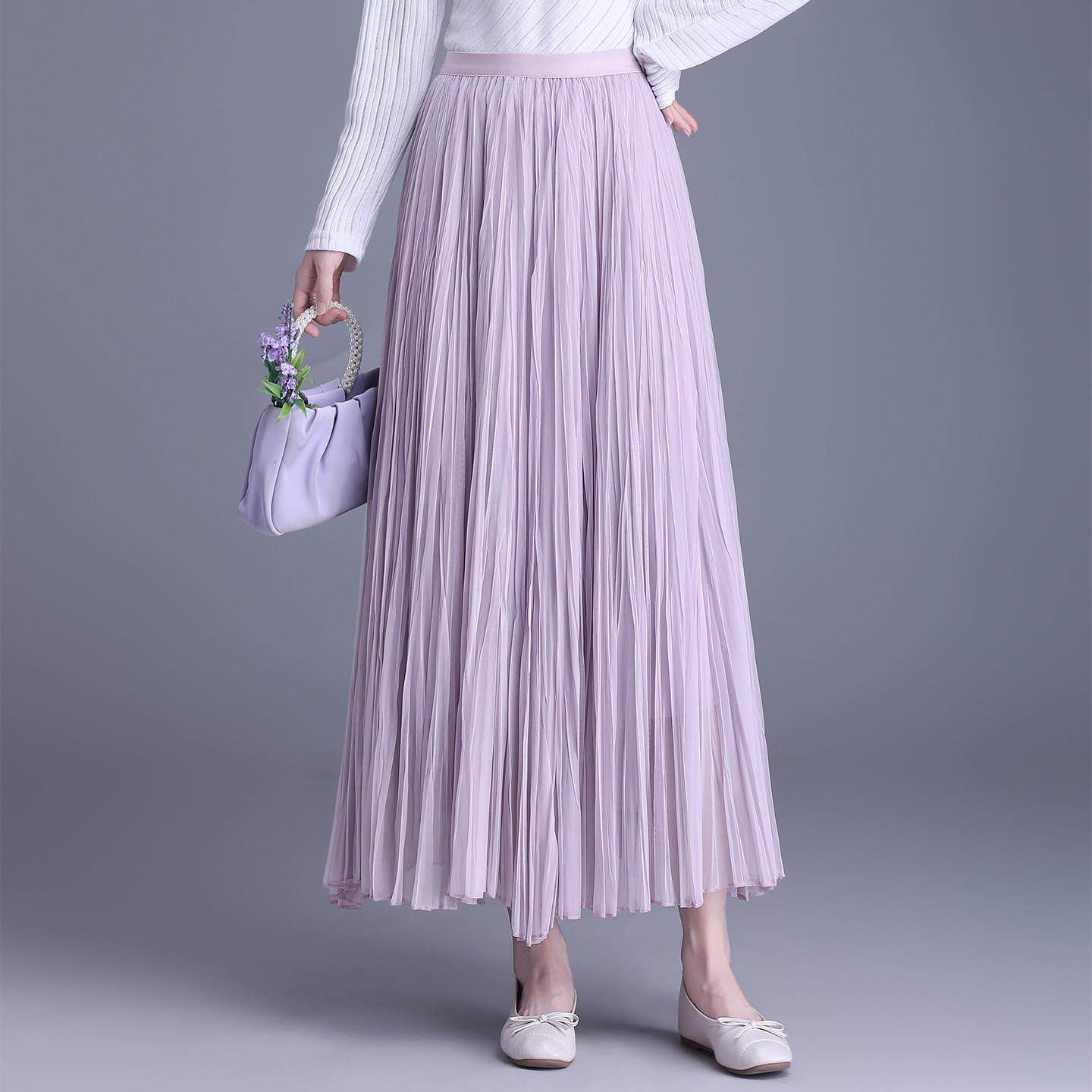 清新温柔风纯色a字网纱半身裙女韩版约会日常百褶网纱裙子中长裙