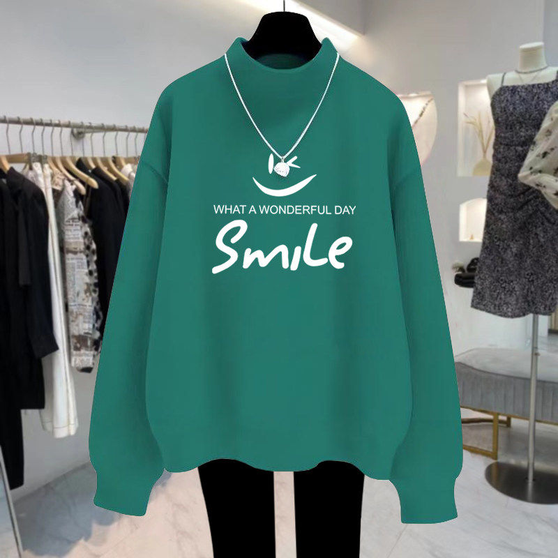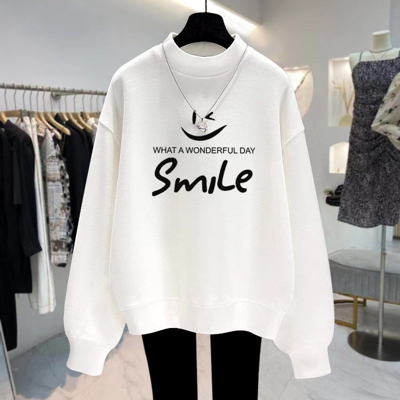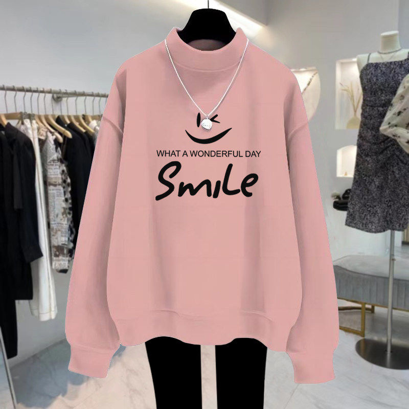 杏色半高领加绒加厚卫衣女宽松减龄2025秋冬新款套头打底外套上衣