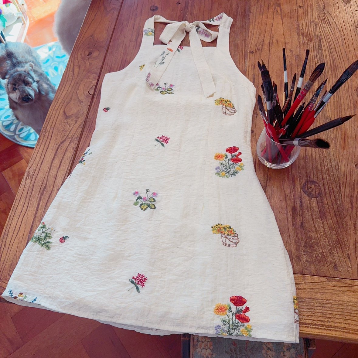 rom2小码s 有内衬 高品质 刺绣提花 森女茶歇裙 挂脖吊带连衣裙
