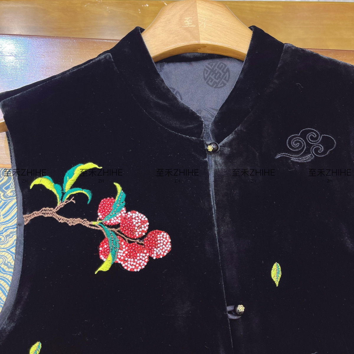 26年早春!极简大牌老钱新中式真丝丝绒锦鲤绣花马甲