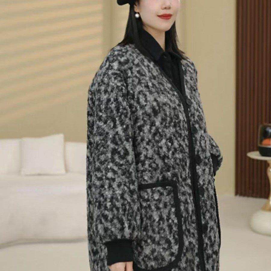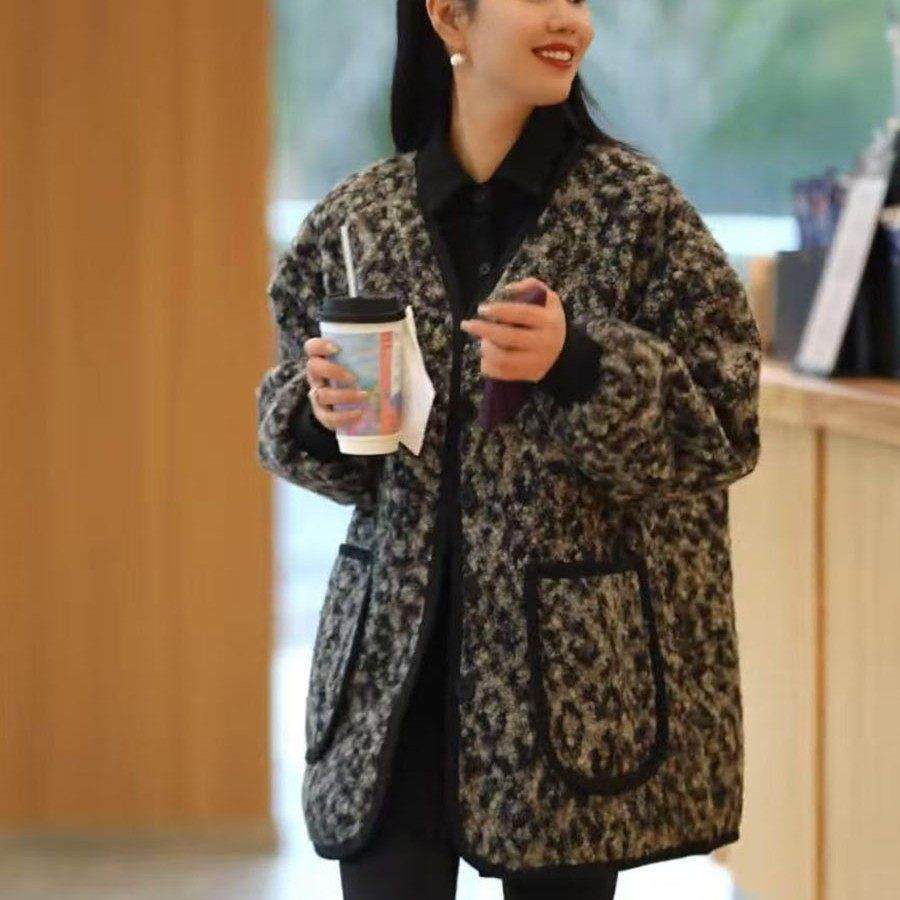 首页> 女装> 香港颗粒绒一体绒宽松豹纹休闲外套女2025秋冬新款中长款上衣潮女