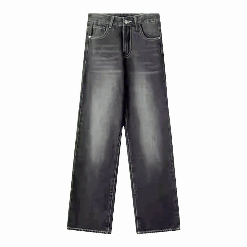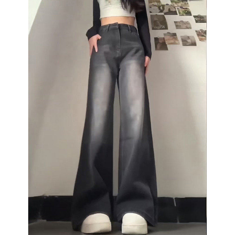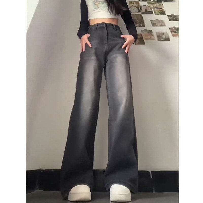 黑灰色阔腿牛仔裤女款夏薄款胖mm高腰显瘦直筒裤2025新款遮胯裤子