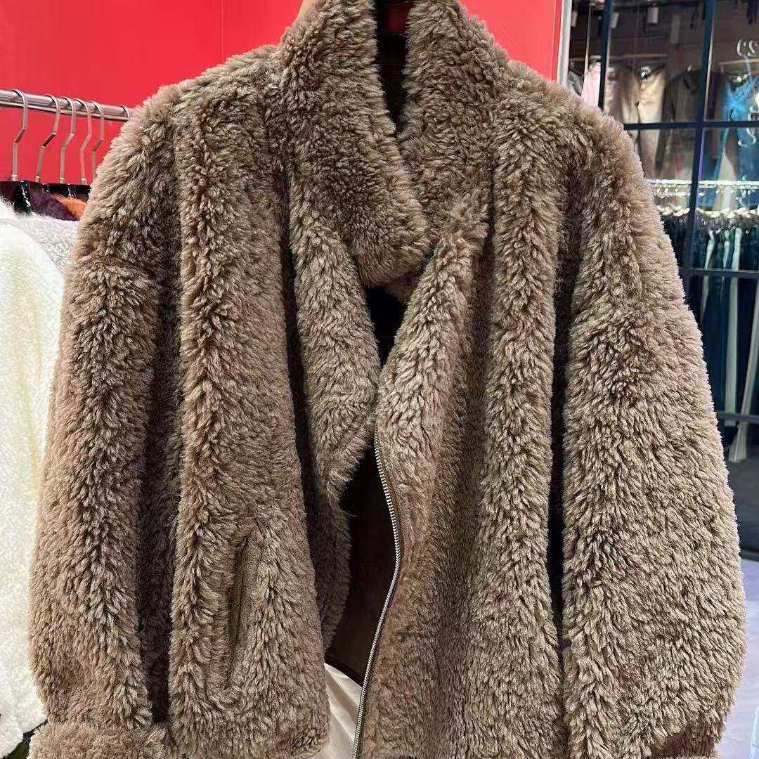 好漂亮鹿皮绒羊毛内里翻领外套女2025年冬季新款短上衣宽松时尚潮