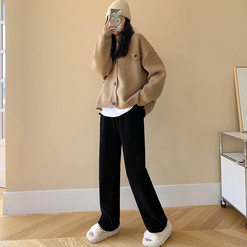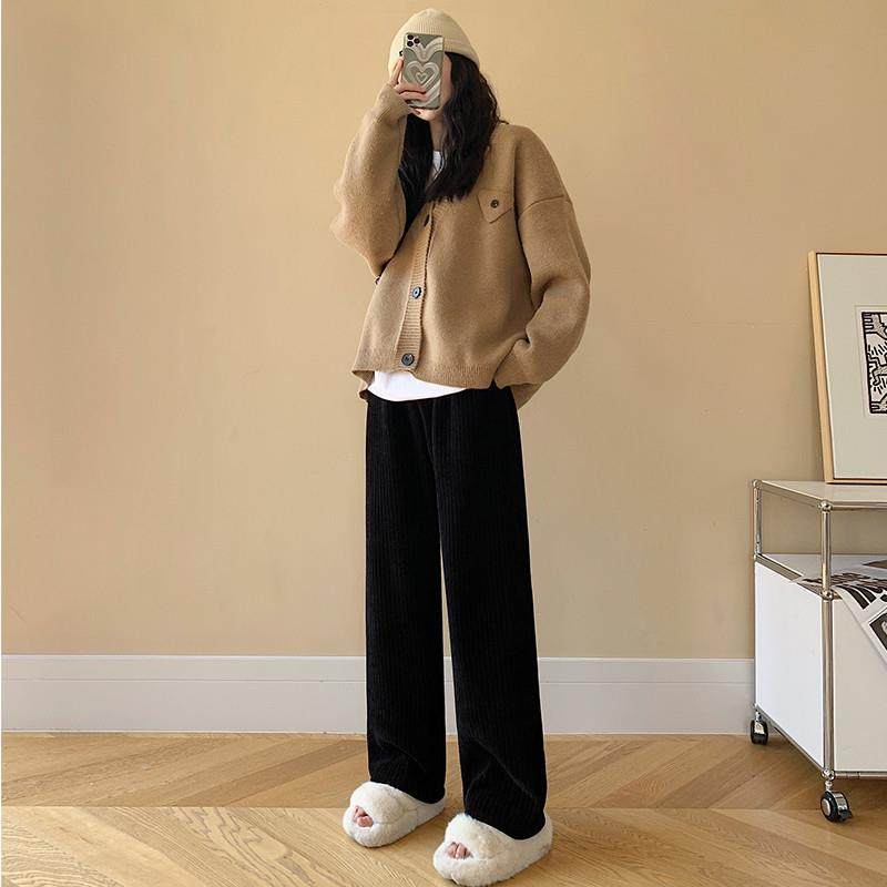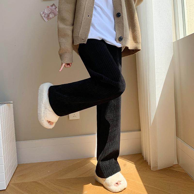 加绒雪尼尔阔腿裤女秋2025新款小个子高腰秋冬直筒休闲灯芯绒裤子