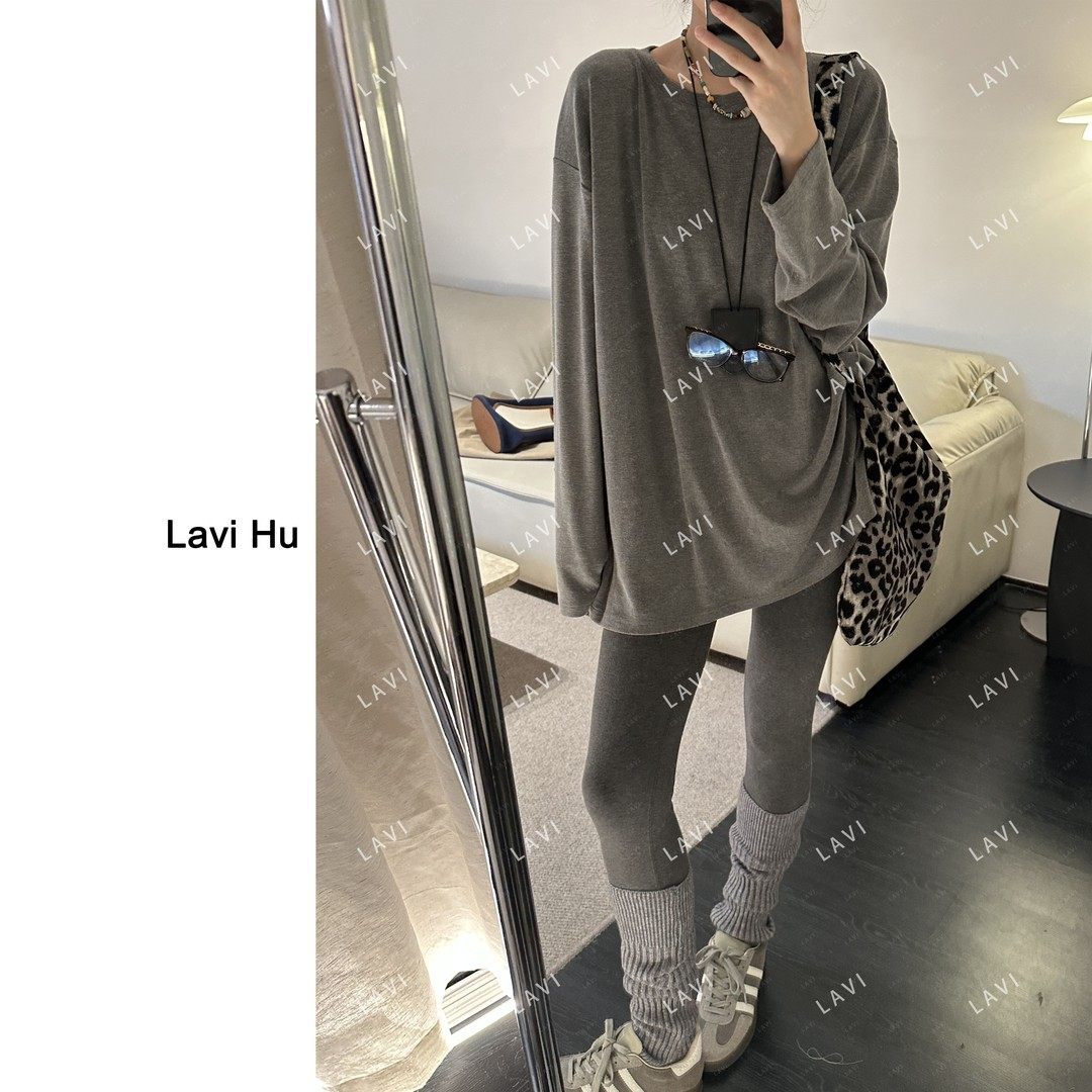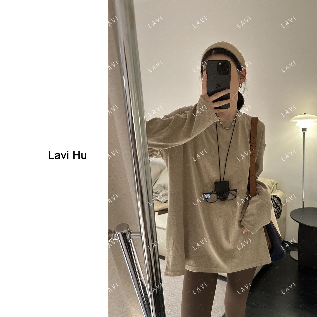 日韩3925# 眠眠月光 秋冬长袖圆领宽松型T恤套头简约时尚打底