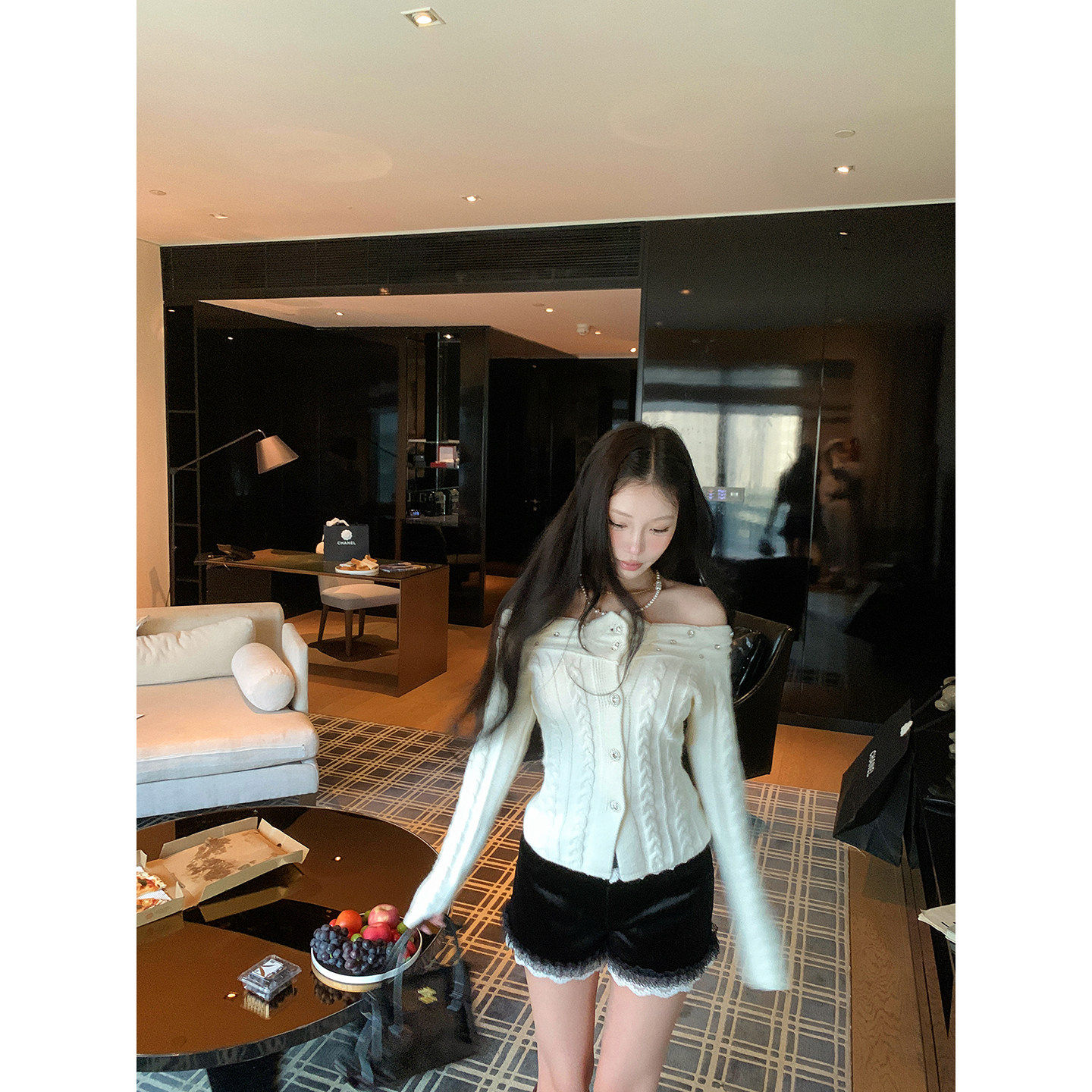 Pinksoya甜辣一字肩麻花软糯毛衣女2025冬季新款收腰显瘦开衫上衣