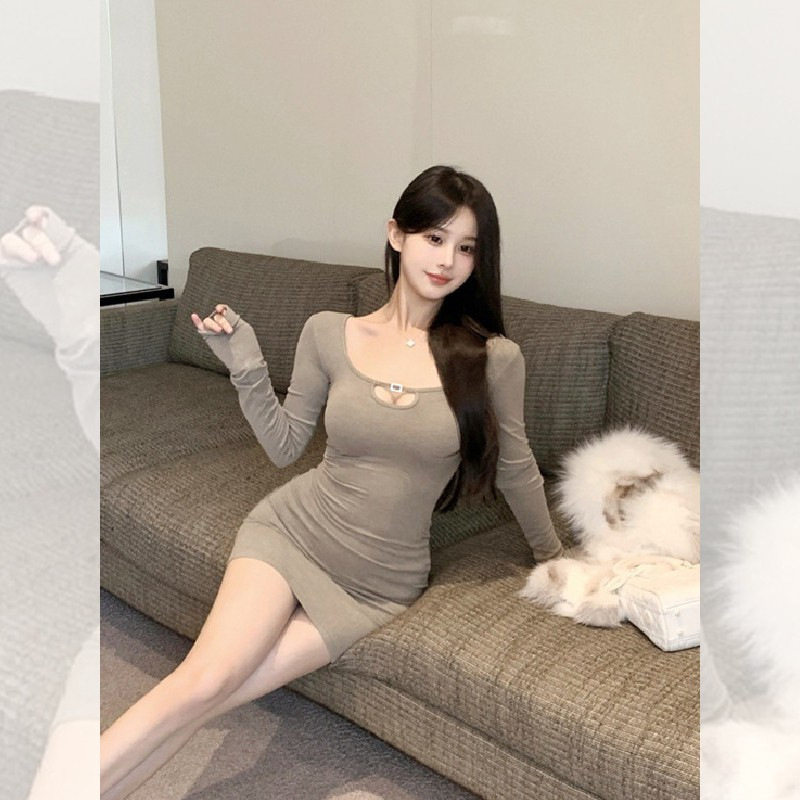 纯欲性感辣妹显瘦气质长袖连衣裙女秋冬小个子内搭收腰包臀短裙子