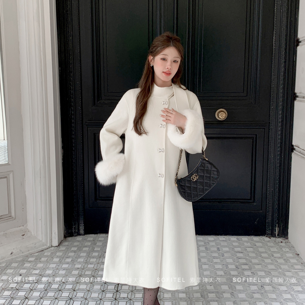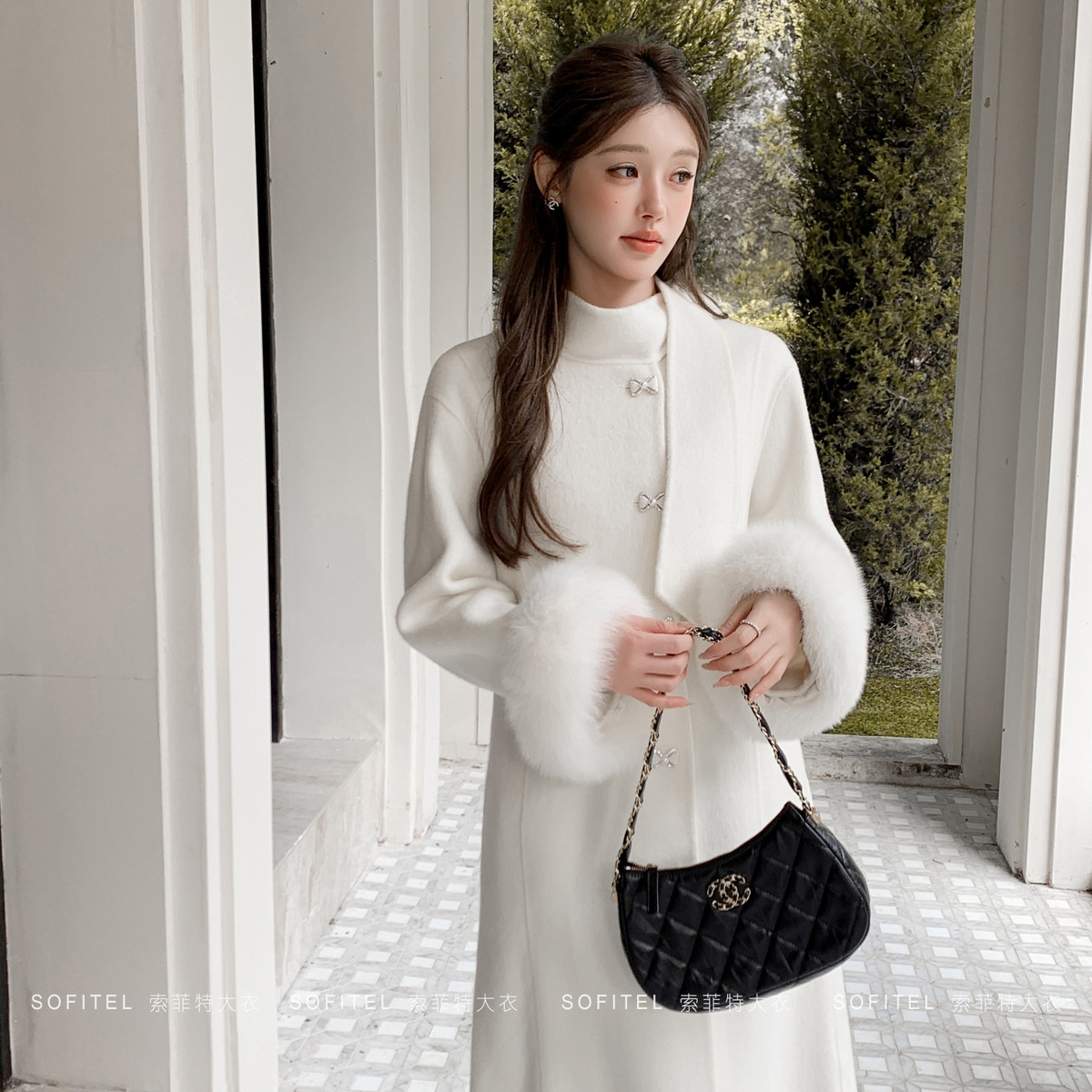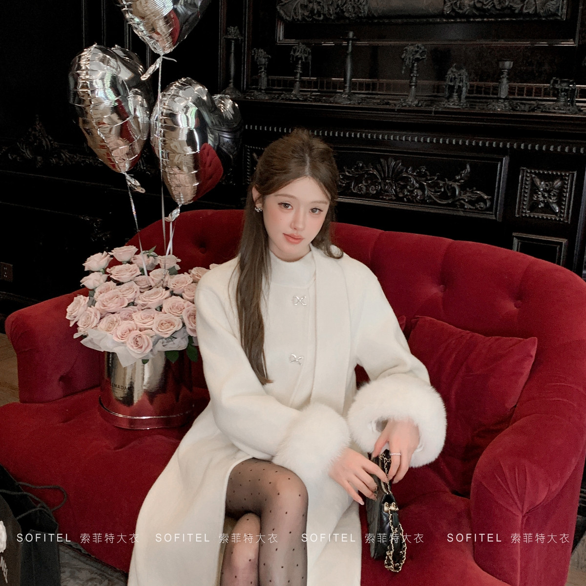 法式宫廷风立领贵气千金羊毛外套(配袖口真狐狸毛)(含100羊毛)