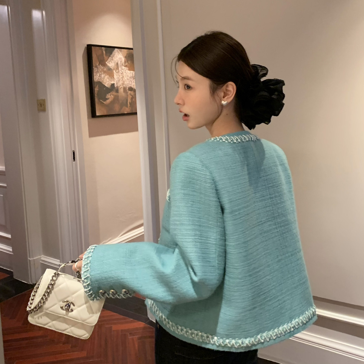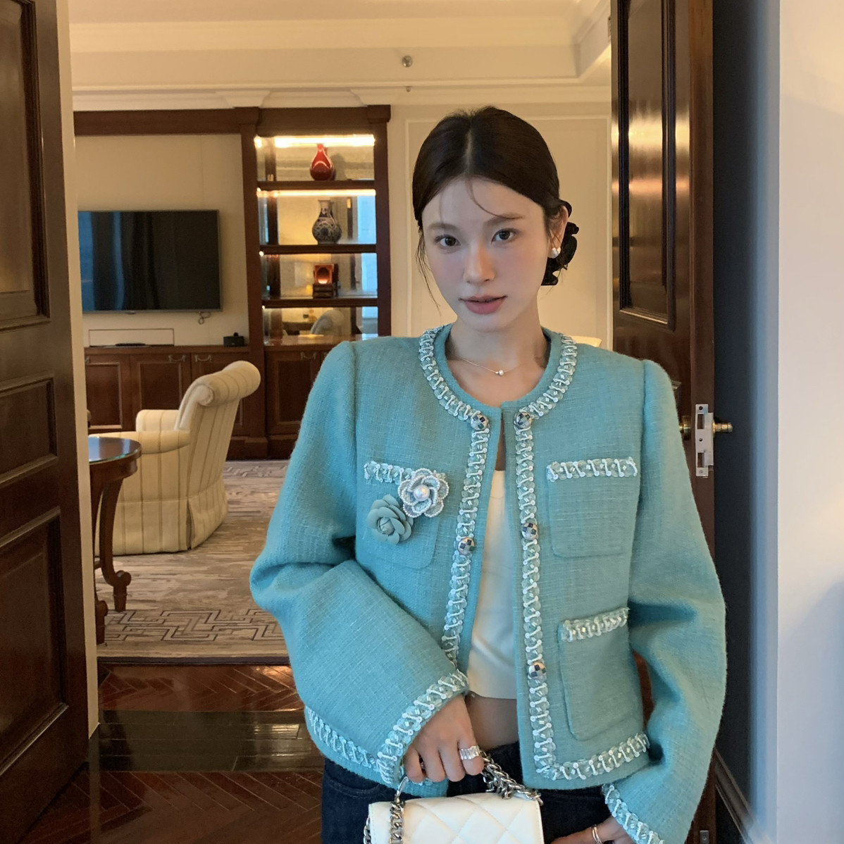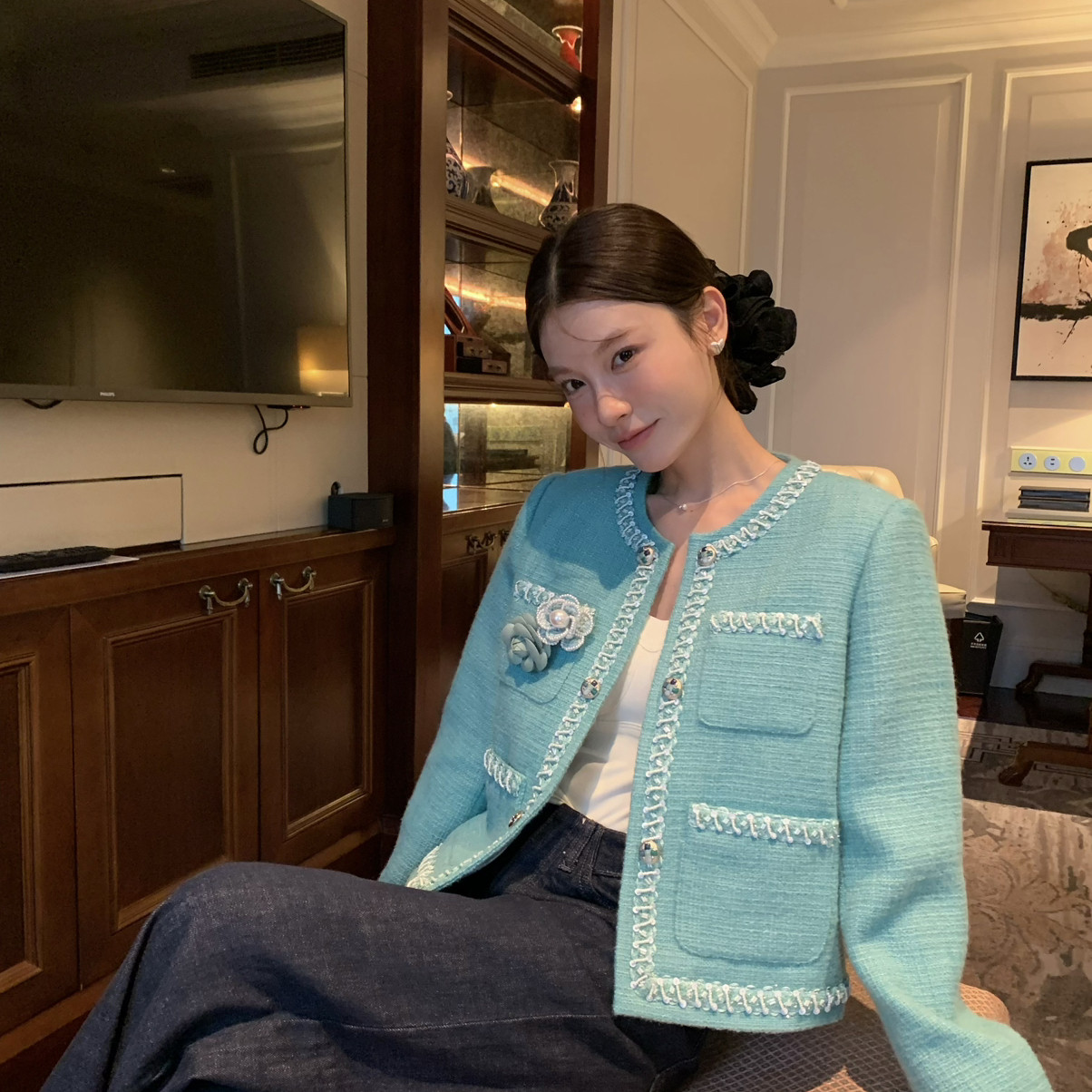 小香风千金名媛羽绒外套赫本风保暖羽绒服外套(配胸针)