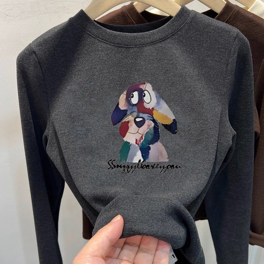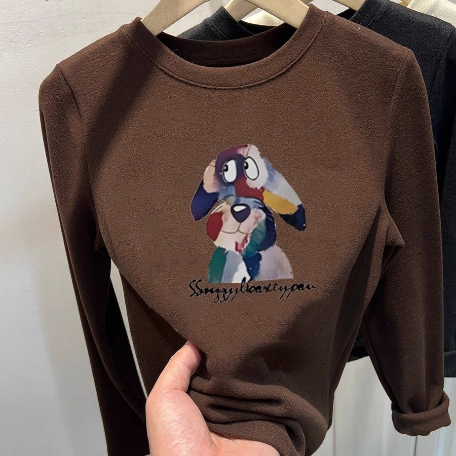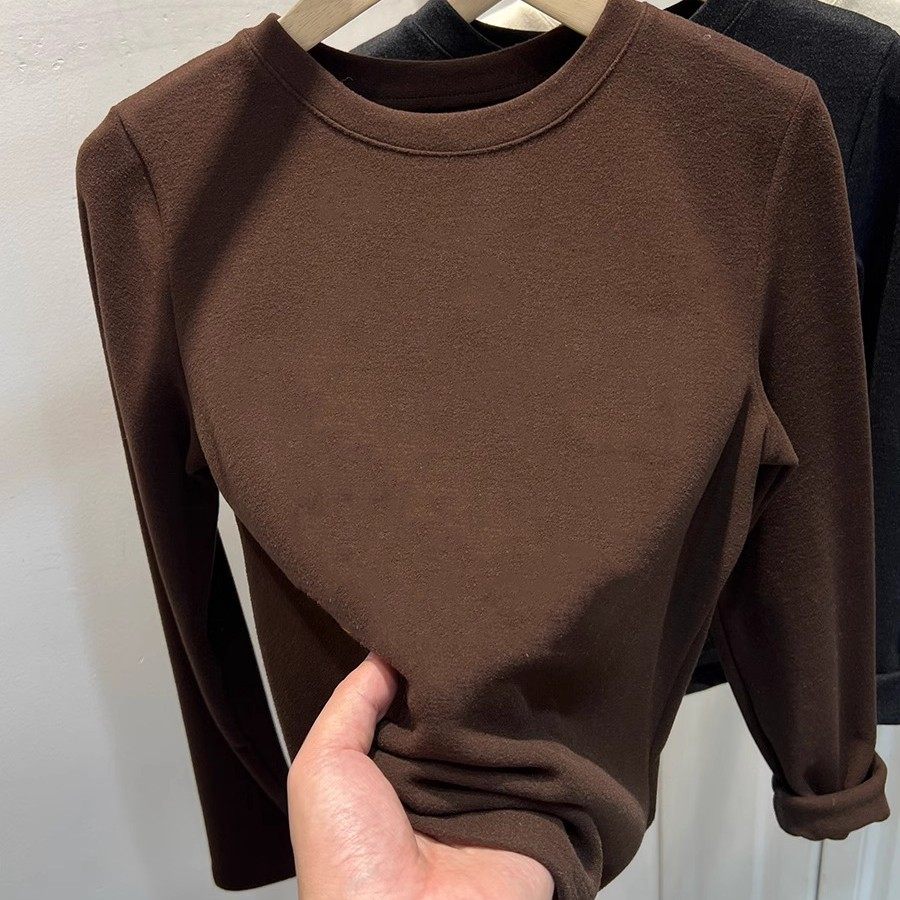 掐腰显瘦质感绝了!软糯磨毛德绒圆领长袖T恤加厚保暖内搭打底衫