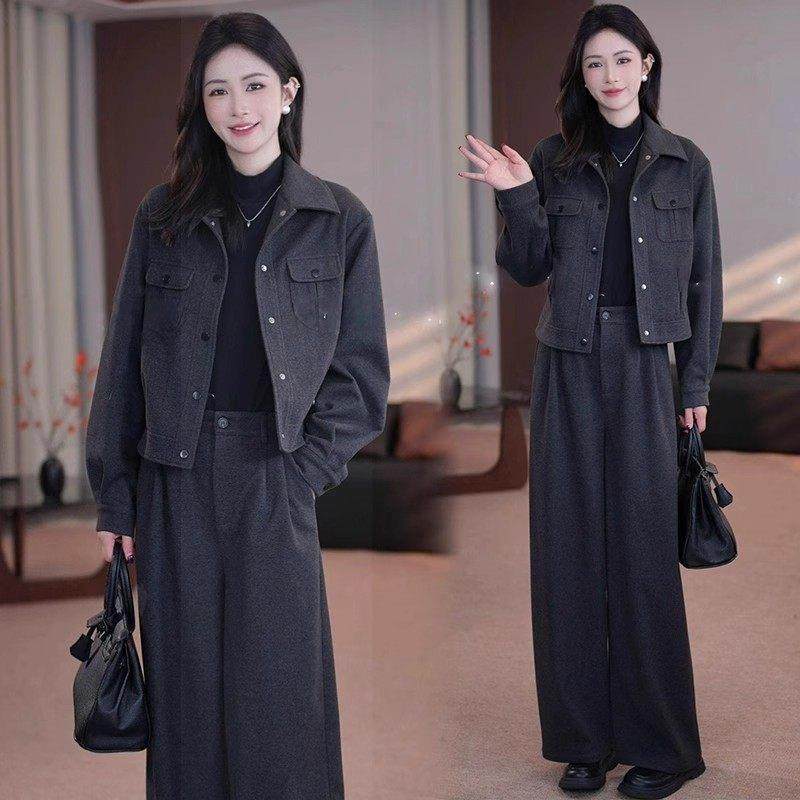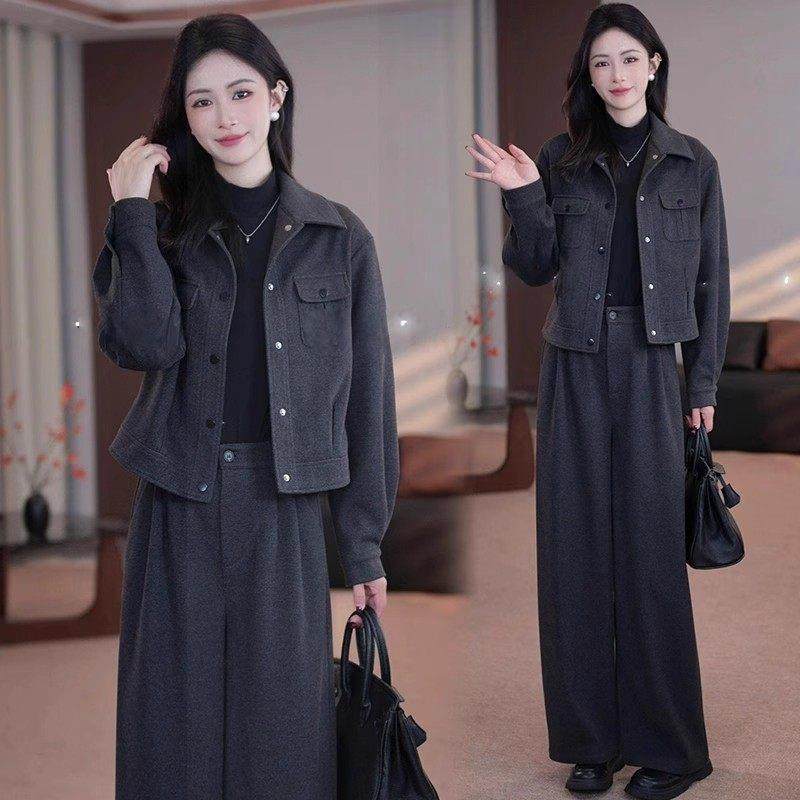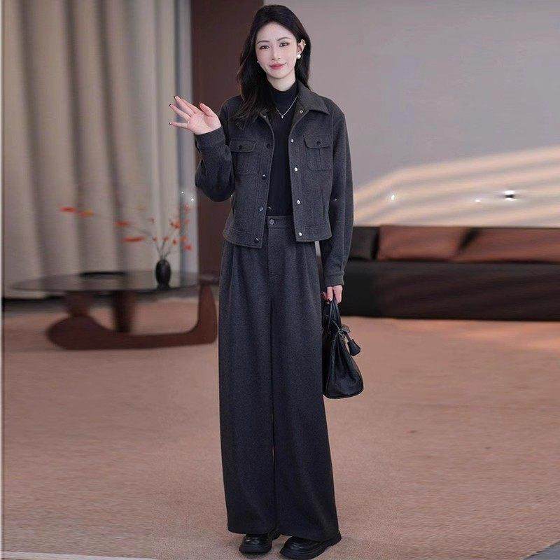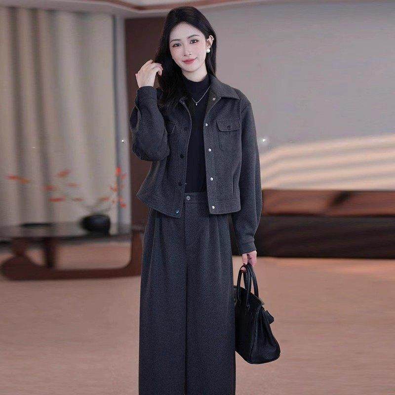 香港代购高级感时尚套装女春秋新款洋气显瘦短款外套阔腿裤两件套