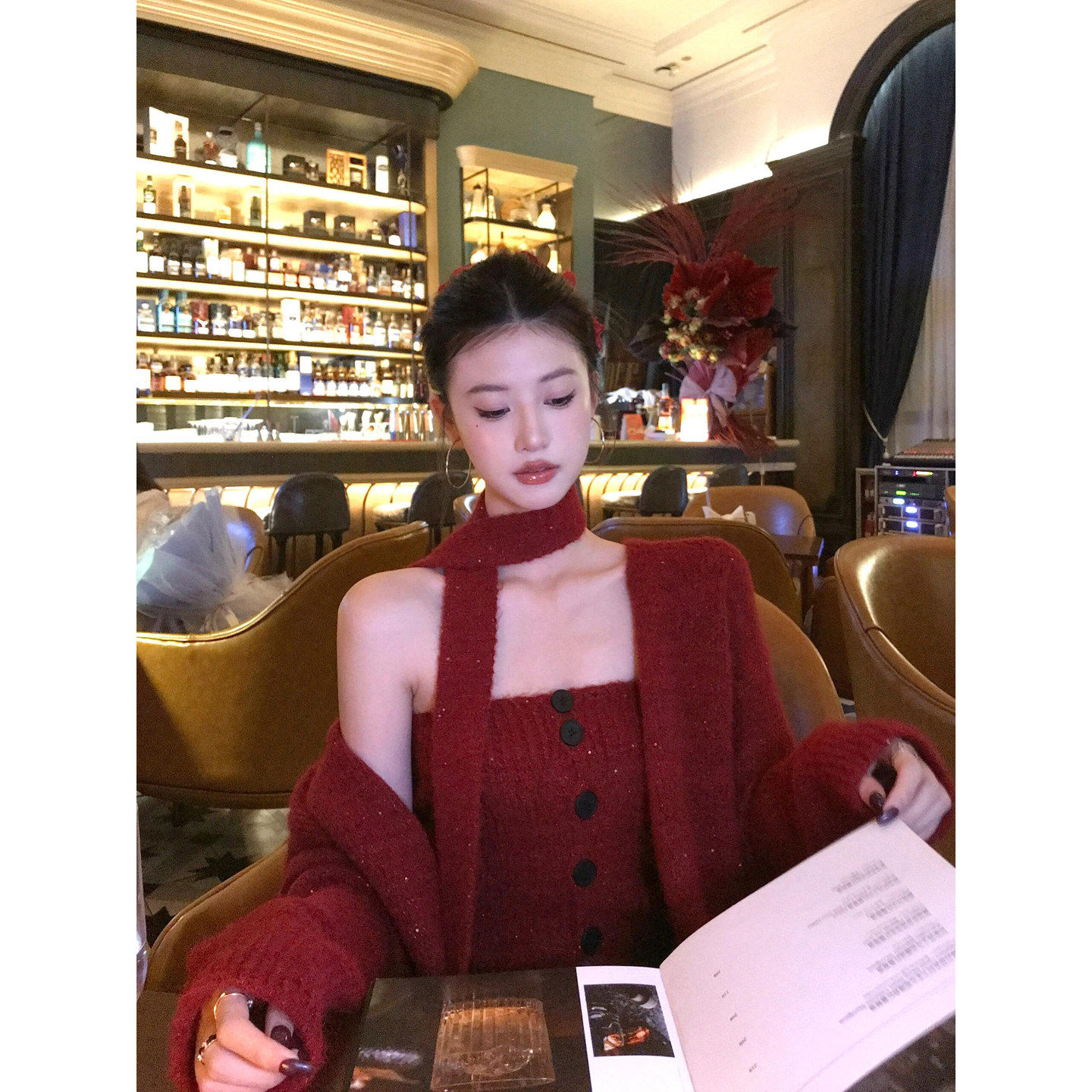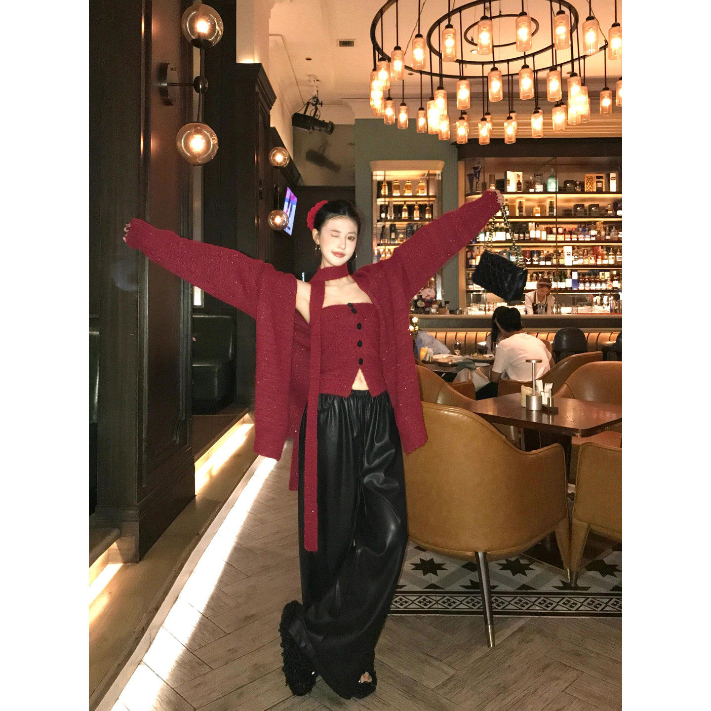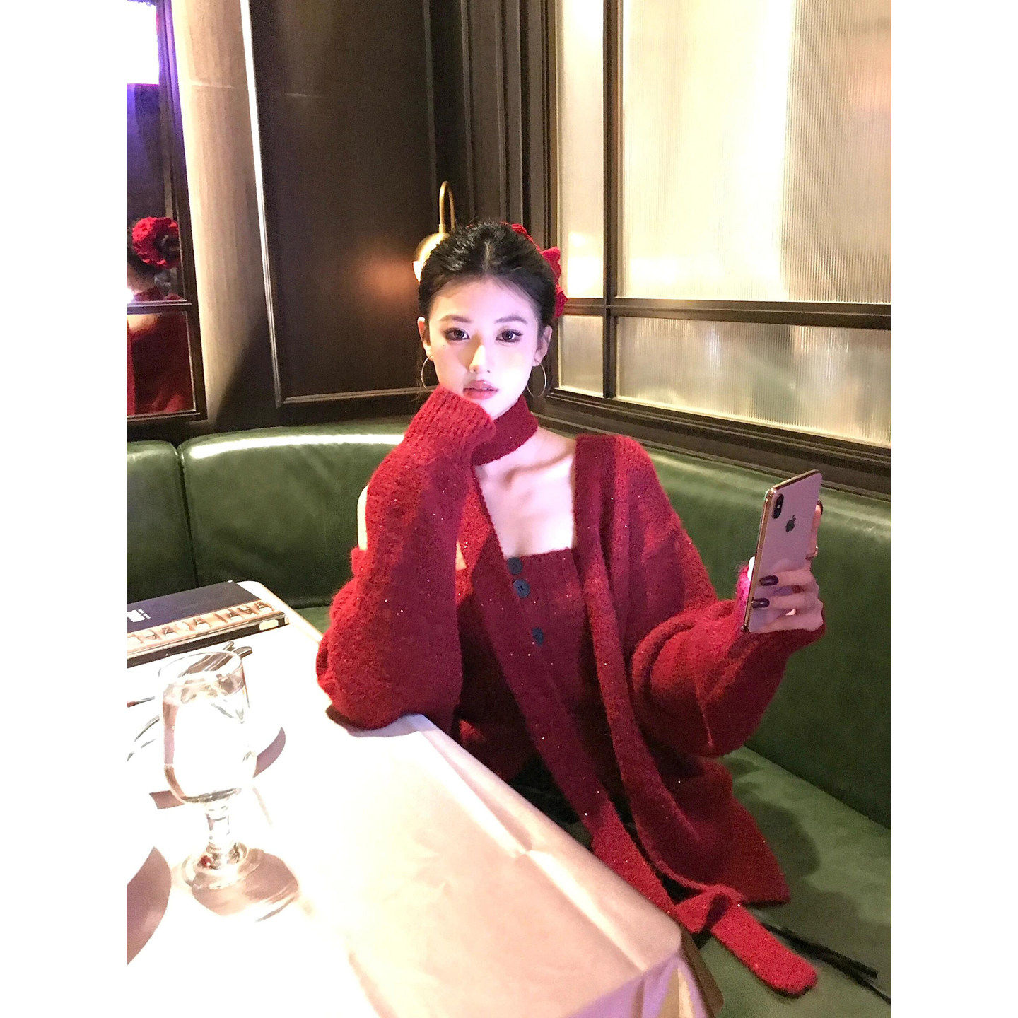 氛围感毛衣外套女春季外衣韩系新年穿搭红色针织开衫外穿纯欲上衣