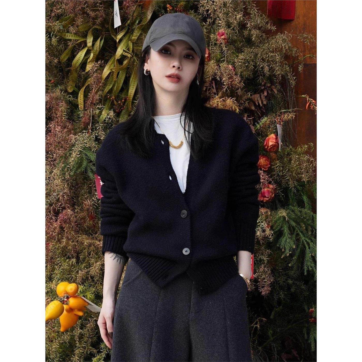 老钱风羊毛开衫女2025秋冬款设计感卡腰显瘦毛衣外套软糯针织上衣