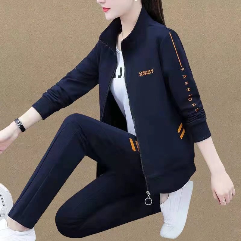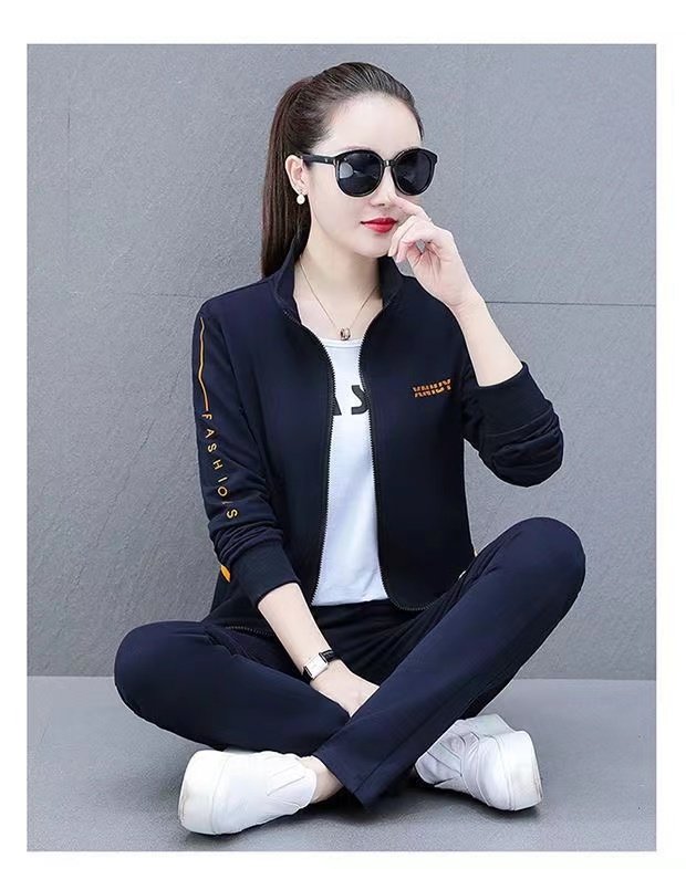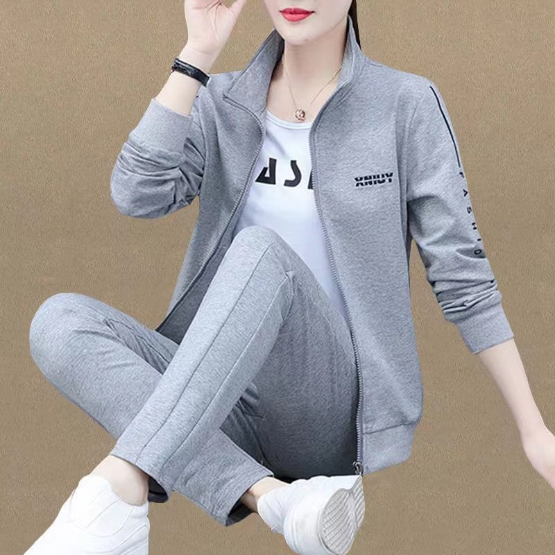 妈妈装春秋季运动服套装女2022新款韩版休闲中老年大码女装三件套