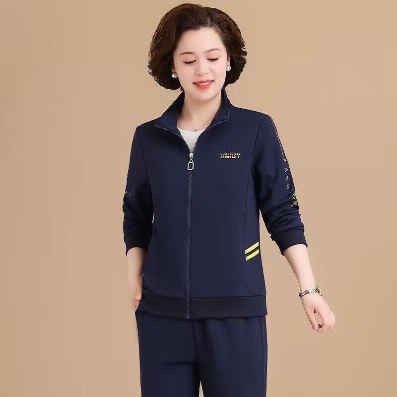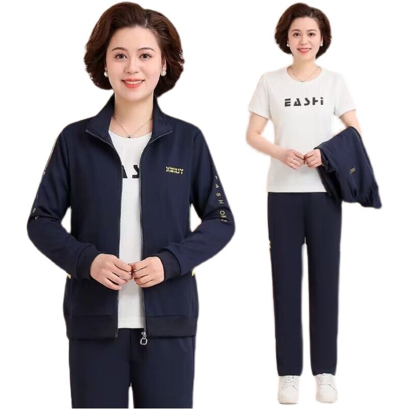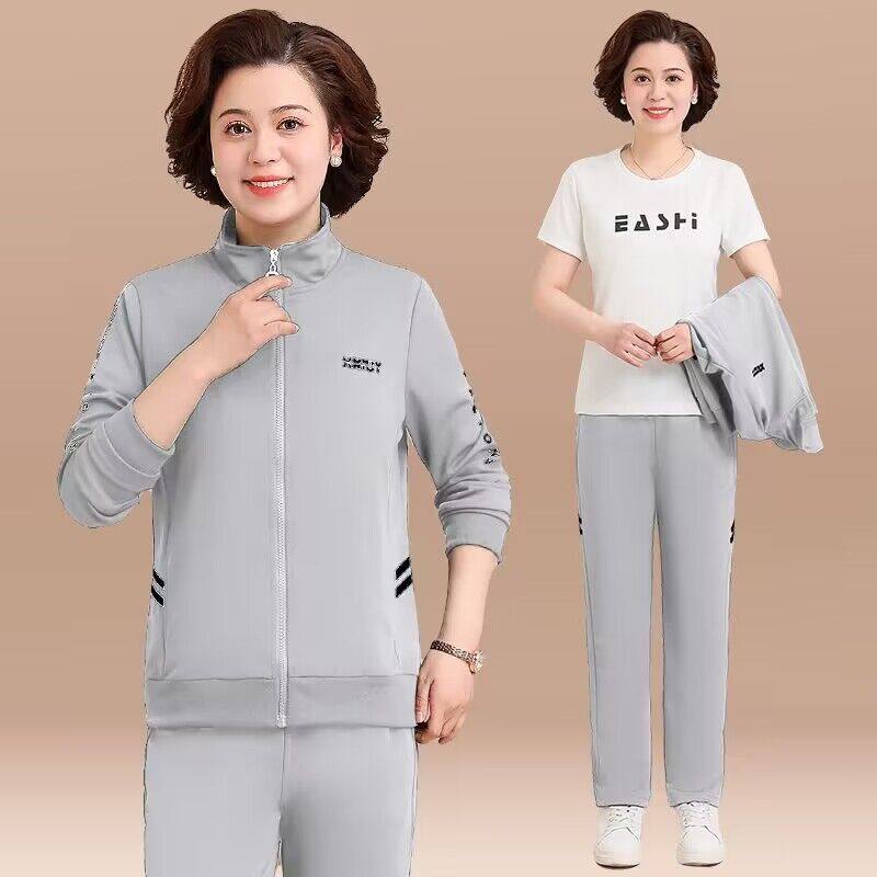 中年妈妈春秋装大码运动服三件套装中老年女士春秋外套休闲套装女