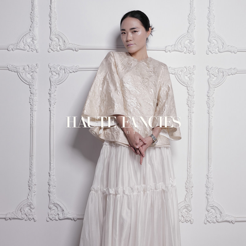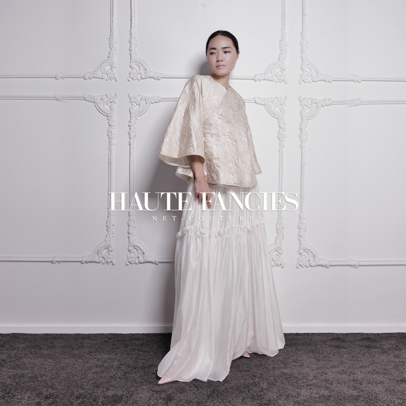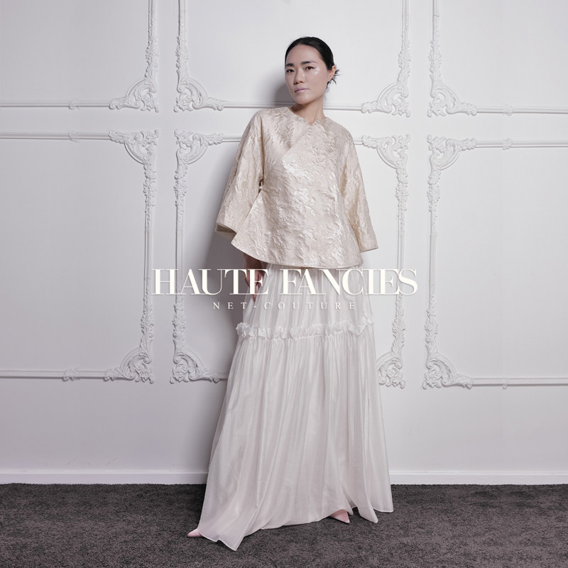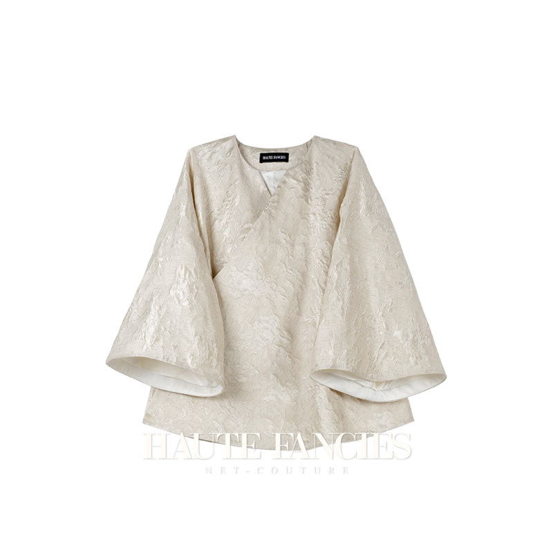 书香 HAUTE FANCIES后构想|杏色提花斜襟宽袖外套一片式上衣早秋