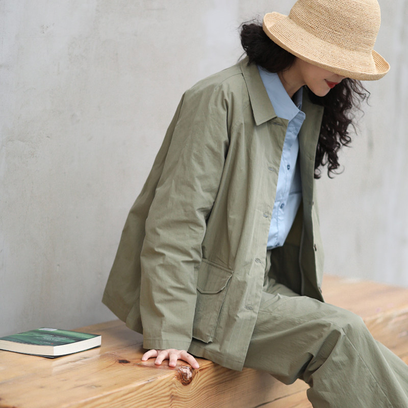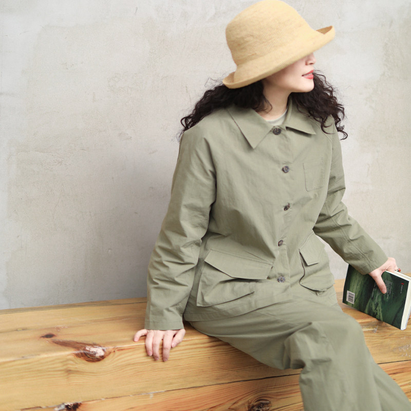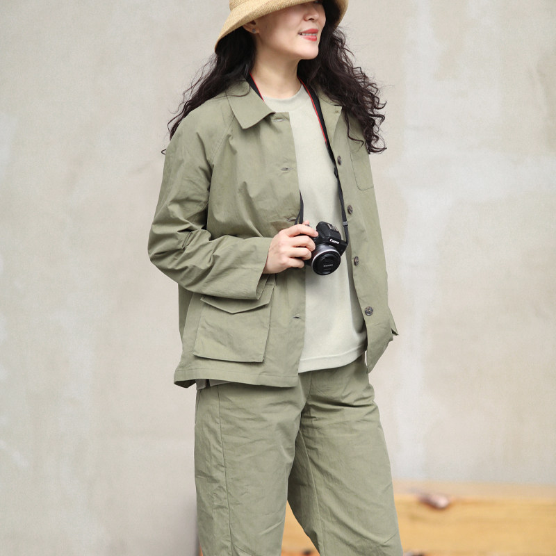 游设计原创设计感小众复古工装风翻领纸感锦棉夹克外套 春简