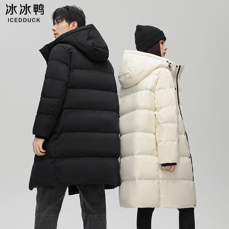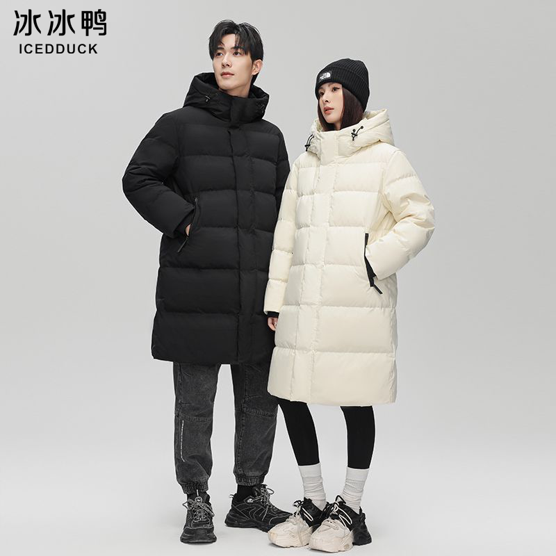 冬季新款男女同款中长款加厚保暖90白鸭绒羽绒服